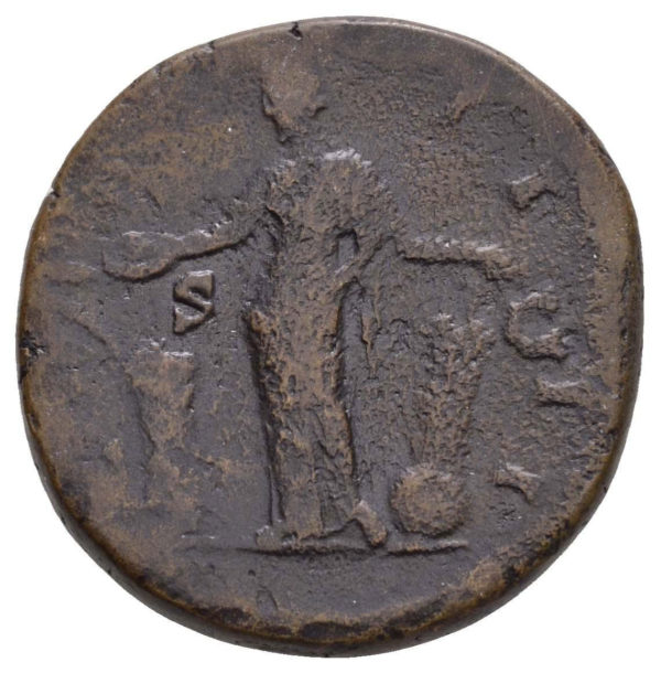 | REVERSE | COS IIII, Salus standing left, holding patera, feeding serpent arising from an altar, and upright rudder, S-C across fields. |