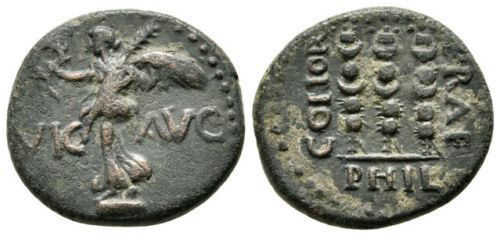 | OBVERSE | VIC AVG standing left on basis, holding wreath and palm frond |