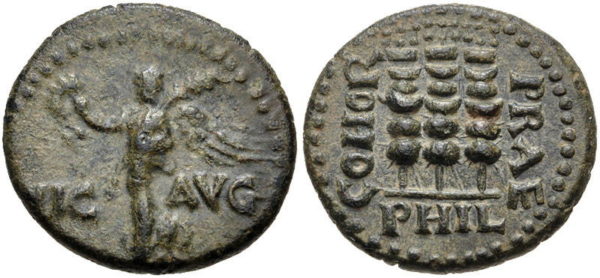 | OBVERSE | VIC AVG standing left on basis, holding wreath and palm frond |