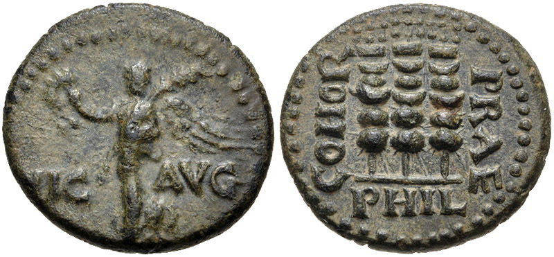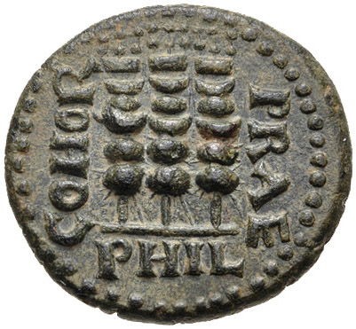 | REVERSE | COHOR PRAE PHIL around three military standards |