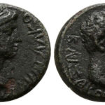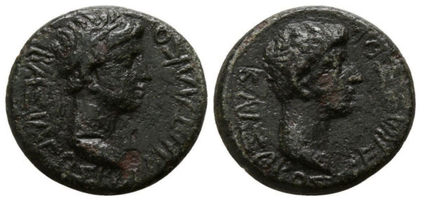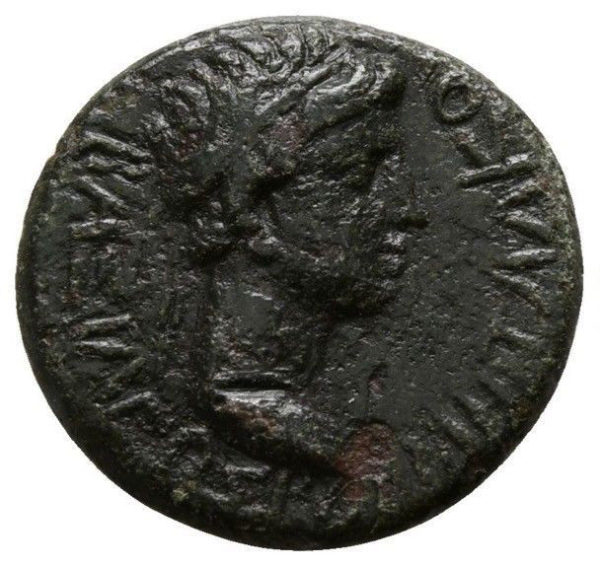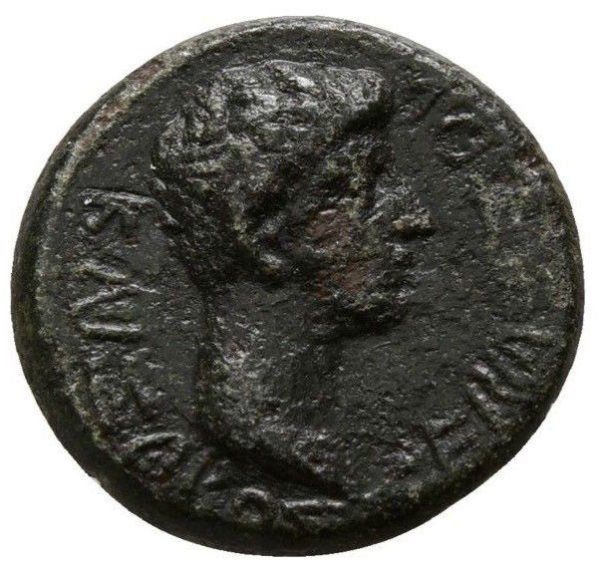 | REVERSE | KAIΣAΡOΣ ΣEBAΣTOY, bare head of Augustus right. |