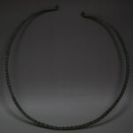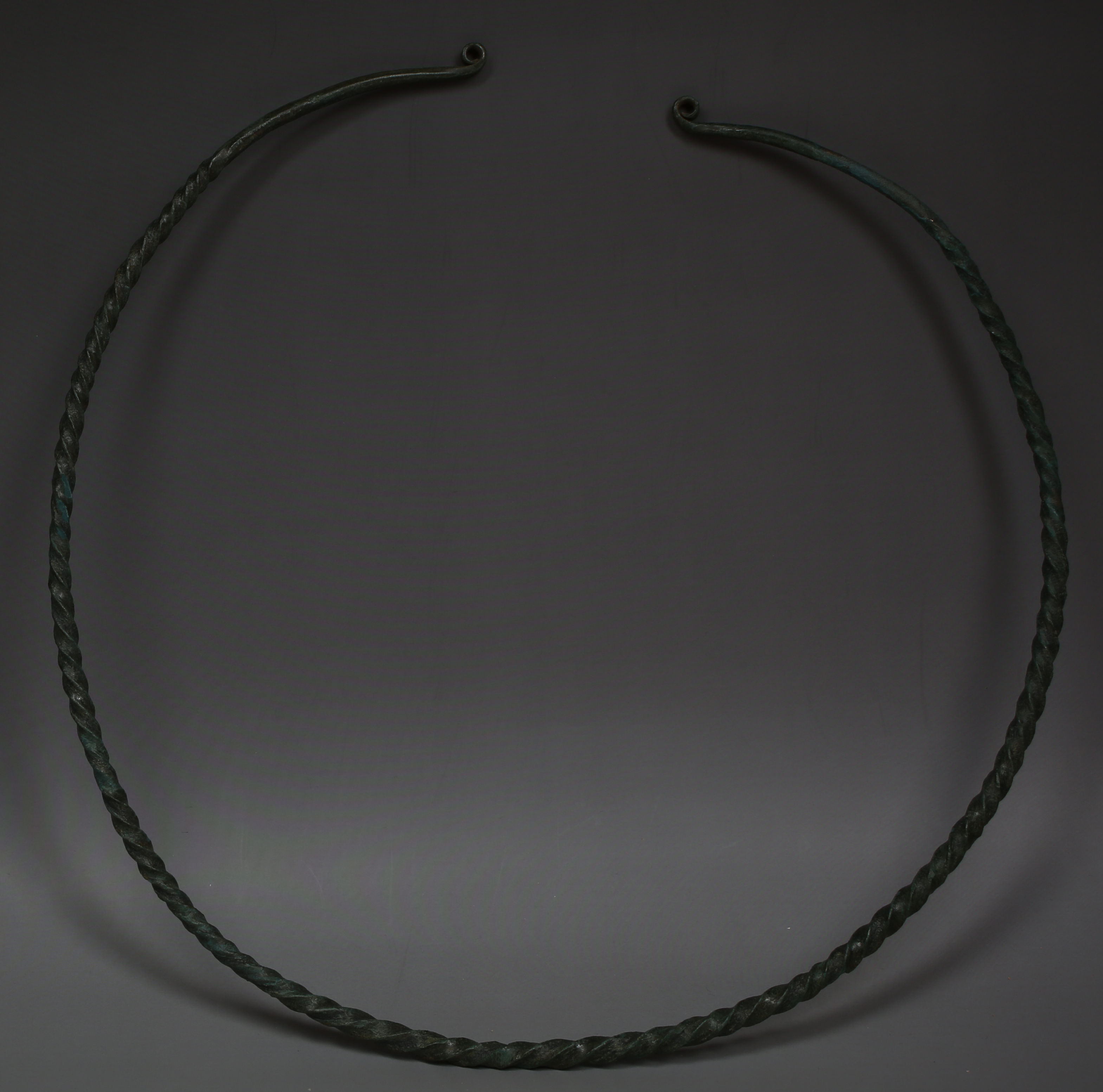 The Urnfield culture was a Bronze Age culture that flourished across much of Europe from around 1300 to 750 BCE, characterized by its widespread use of cremation burial practices and the deposition of cremated remains in urns or other ceramic vessels. One distinctive feature of the Urnfield culture was the burial custom of burying the deceased along with grave goods, including pottery, weapons, tools, and personal ornaments. Among the most iconic and prestigious grave goods associated with the Urnfield culture are twisted bronze torques, which were worn as necklaces or ornaments by individuals of high status.