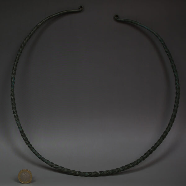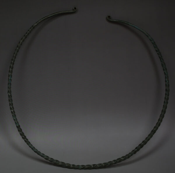 Bronze torques were not only symbols of social status and prestige but also served ritualistic and ceremonial purposes within Urnfield society. They may have been worn during important religious ceremonies, rituals, or gatherings, where they would have played a role in asserting the wearer’s authority and connection to the divine. Additionally, bronze torques were sometimes deposited as votive offerings in sacred places, such as rivers, lakes, or hilltop sanctuaries, as part of religious or propitiatory rituals.