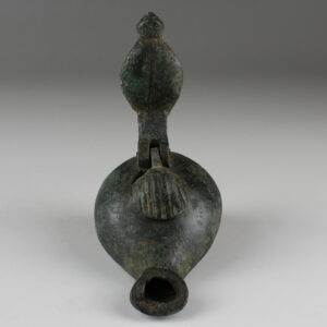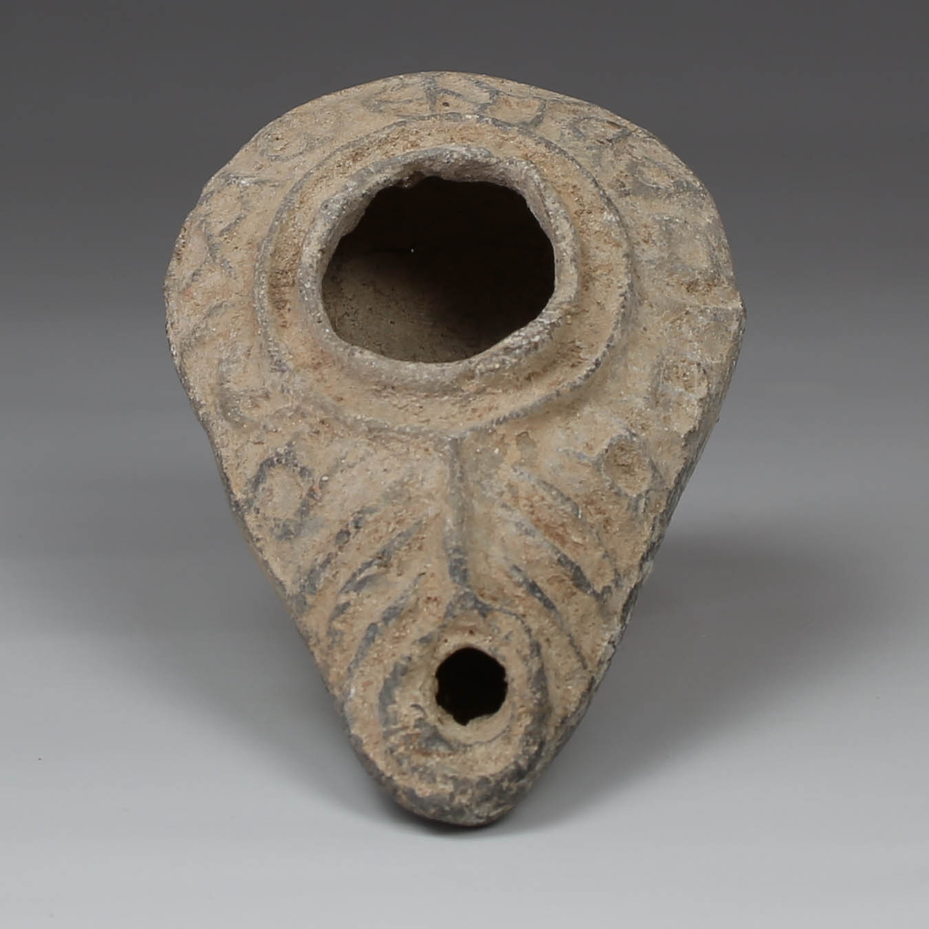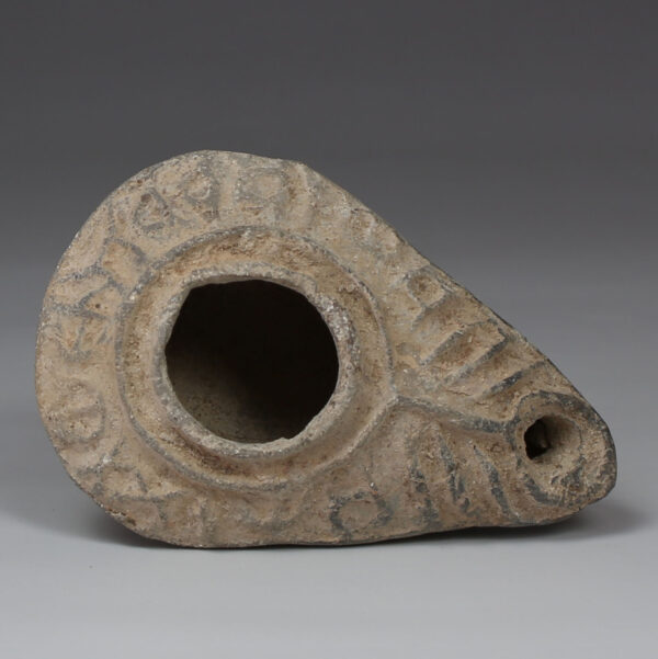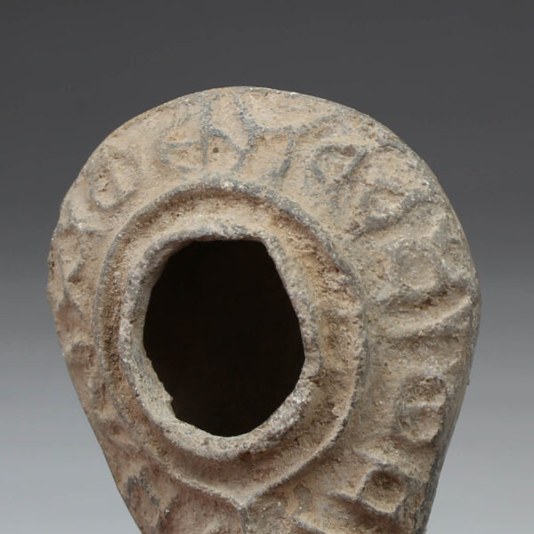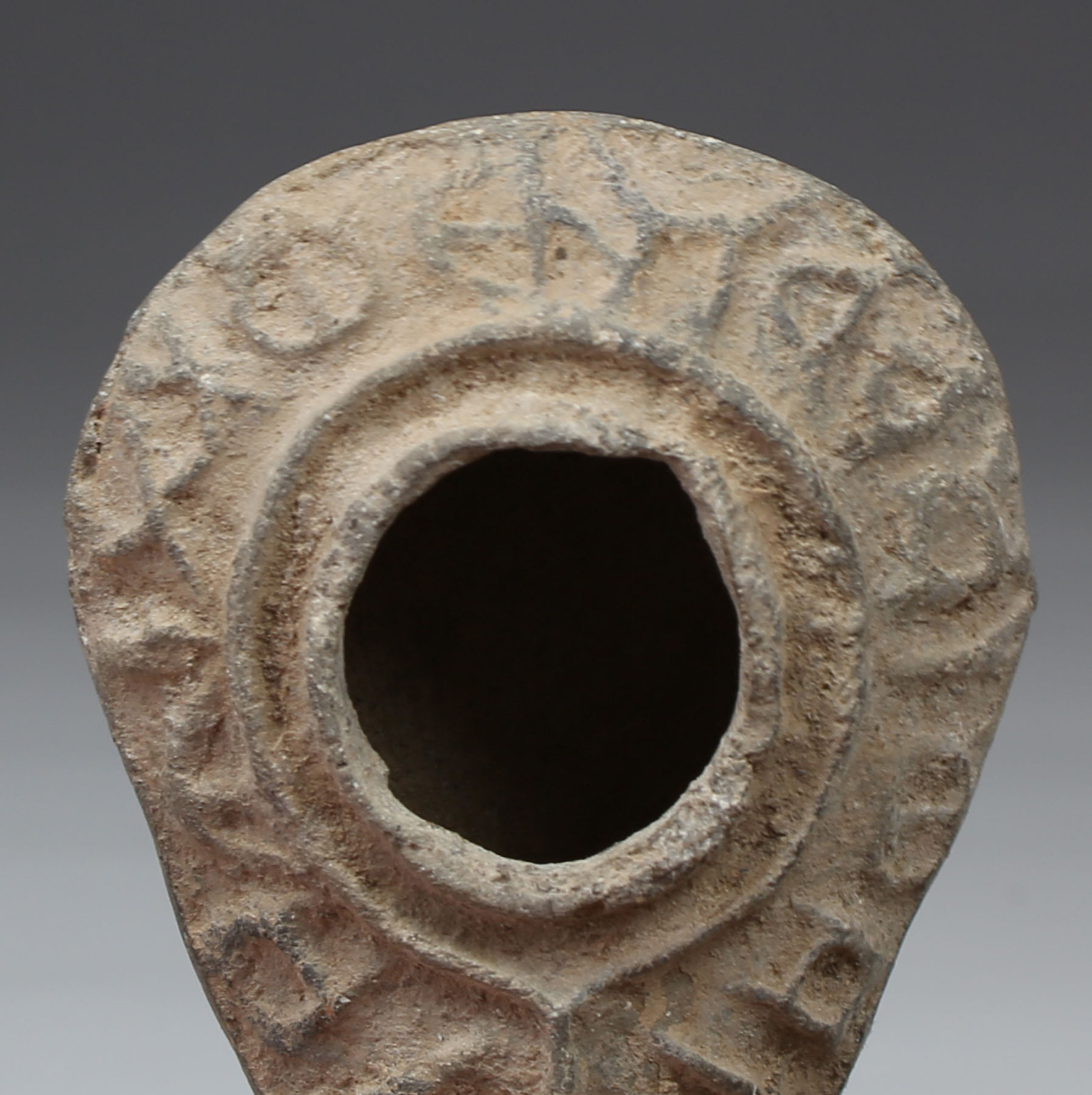 In addition to its spiritual message, the Byzantine oil lamp with this inscription provides valuable insights into the religious and cultural practices of the period. The lamp would have been used in private homes, churches, or during religious ceremonies, emphasizing the importance of maintaining a connection with the divine in various aspects of life. The presence of such an inscription also reflects the broader trend of incorporating Christian themes into art and everyday objects, illustrating how Byzantine art and material culture were deeply intertwined with religious beliefs.