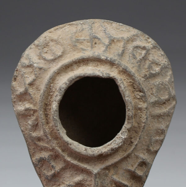 | ITEM | Oil lamp with inscription ‘The light of Christ shines for all’ |
