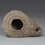 A Byzantine oil lamp inscribed with the phrase “The light of Christ shines for all” is a remarkable artifact that reflects the deep spiritual and theological beliefs of the Byzantine Empire. This inscription emphasizes the central role of Christianity in daily life and religious practices during the Byzantine period. Oil lamps were essential for both practical illumination and religious rituals, and incorporating a Christian message into their design highlights the integration of faith into everyday objects. The inscription serves as both a devotional statement and a reminder of the divine presence in the lives of believers, making the lamp a significant symbol of Christian piety and enlightenment.