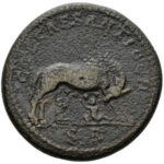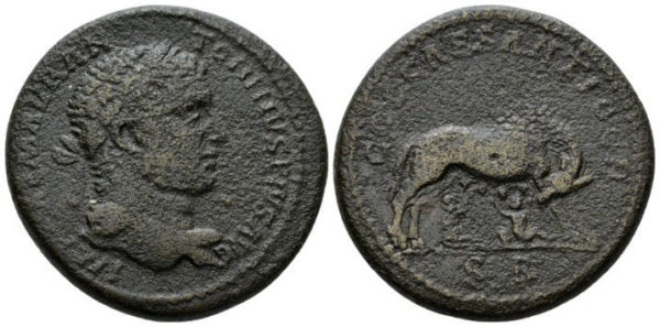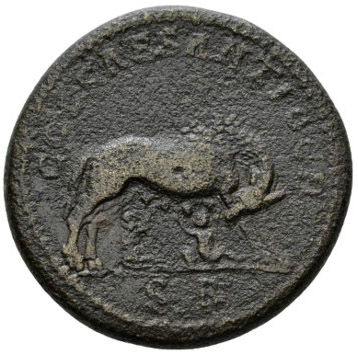 | REVERSE | COL CAES ANTIOCH, SR in ex, she-wolf suckling the twins Romulus and Remus. |