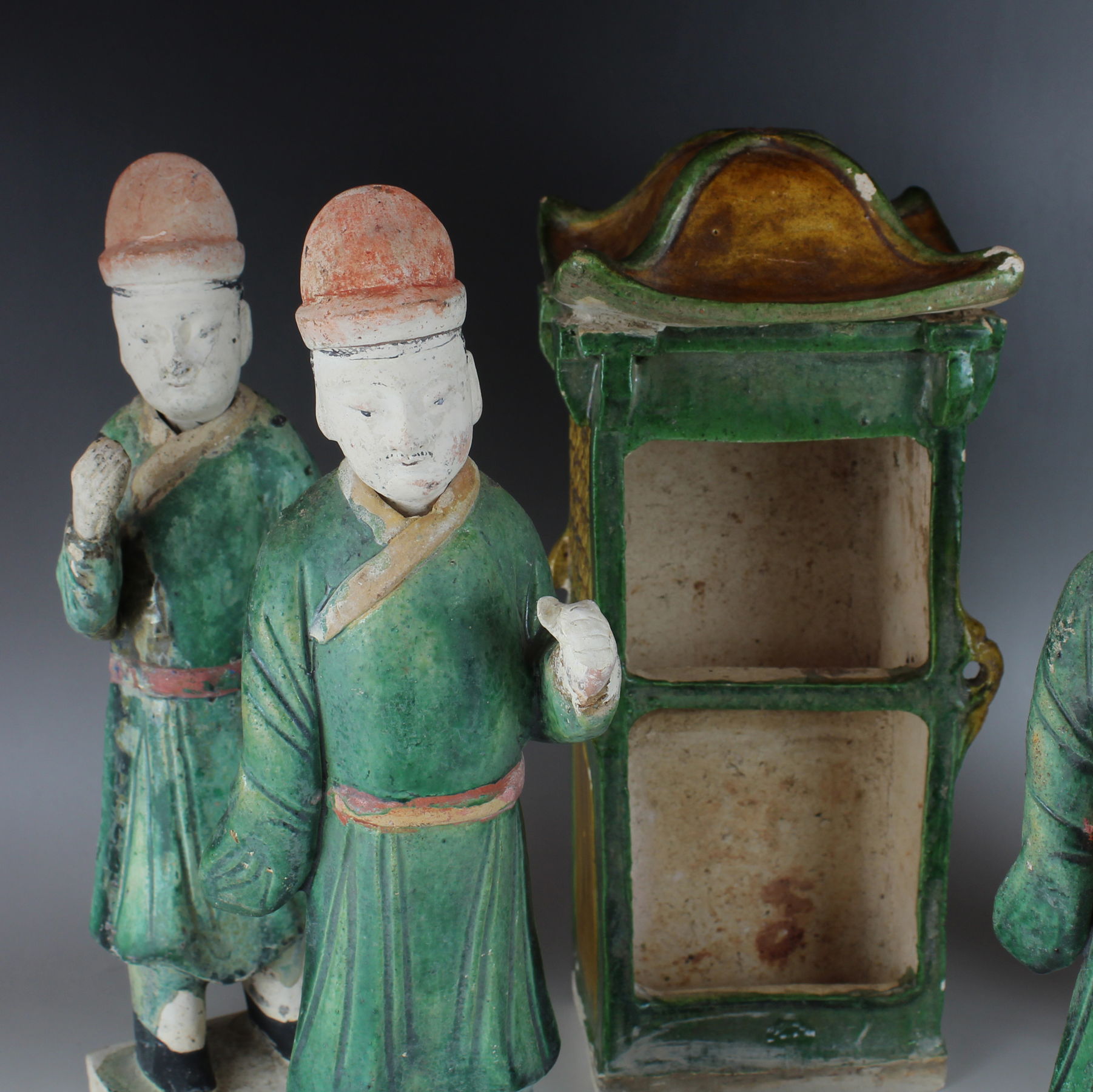 成化年间,釉上彩应用得很细致,主要用于装饰鸡纹小酒杯,深受中国鉴赏家的喜爱。这种 “鸡杯 “在16世纪后期就已经开始仿制,18世纪又开始仿制,非常专业。釉上彩很快就流行起来了,16世纪的时候,釉上彩的色彩更加浓烈,与白茫茫的背景形成鲜明的对比。這些五彩的器物,運用寬廣的調色板,在嘉靖、萬曆時期特別自由、大膽。在中国南方的窑场里,有一些粗制滥造的仿制品,部分是为东南亚市场而制作的,被称为 “汕尾器”,是以出口地之一命名的。明代陶器中最令人印象深刻的是三彩器,主要是以绿松石、紫、黄、深紫蓝色的花纹为装饰的花瓶和罐子,颜色以仿景泰蓝的金属条分开(见下文)。这种坚固的器皿在几个中心制作,其中最好的是在1450年至1550年之间。