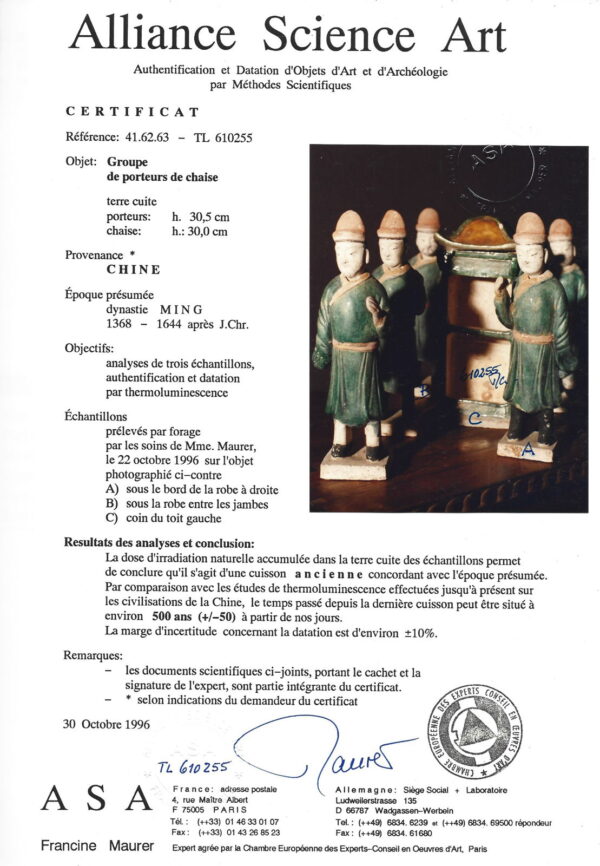 CONDITIONGood condition. Includes Thermoluminescence test by Alliance Science Art (Reference 41.62.63 – TL 610255)