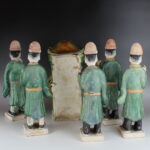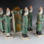 Beginning in the early 16th century, a new ceramic tradition emerged in the town of Yixing, on the western side of Lake Tai, catering to the tea taste of scholars in the nearby Suzhou area. Individually made, sometimes to order, rather than mass-produced, Yixing wares were often signed or even poetically inscribed by highly reputable master craftsmen, such as Shi Dabin of the Wanli era and Chen Mingyuan of the Qing dynasty Kangxi period. The wares were usually unglazed and derived their striking colours—brown, beige, reddish purple, yellow, black, and blue—after firing from the distinctive clays of the region and were known as “purple-sand” teapots. Pieces alternated between two body types: complex floral shapes and exquisitely simple geometric designs. Produced in relatively small quantities and treasured by Chinese collectors, these vessels attracted little attention outside China until the late 20th century.