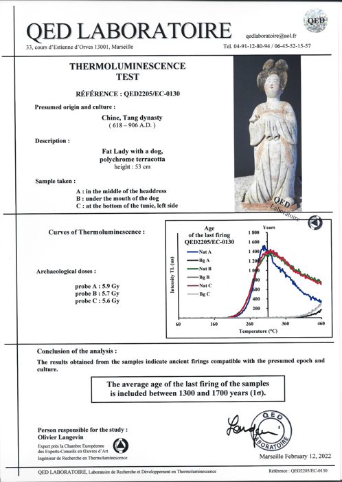 | CONDITION | Good condition. Includes Thermoluminescence test by QED Laboratoire (Reference QED2205/EC-0130) |