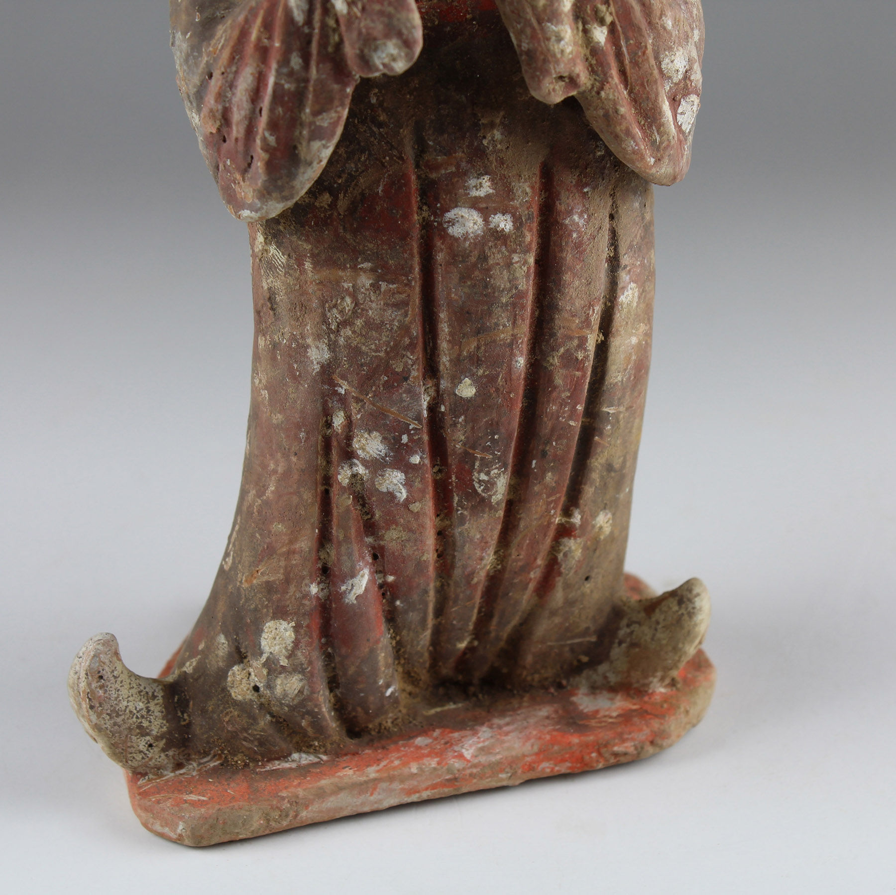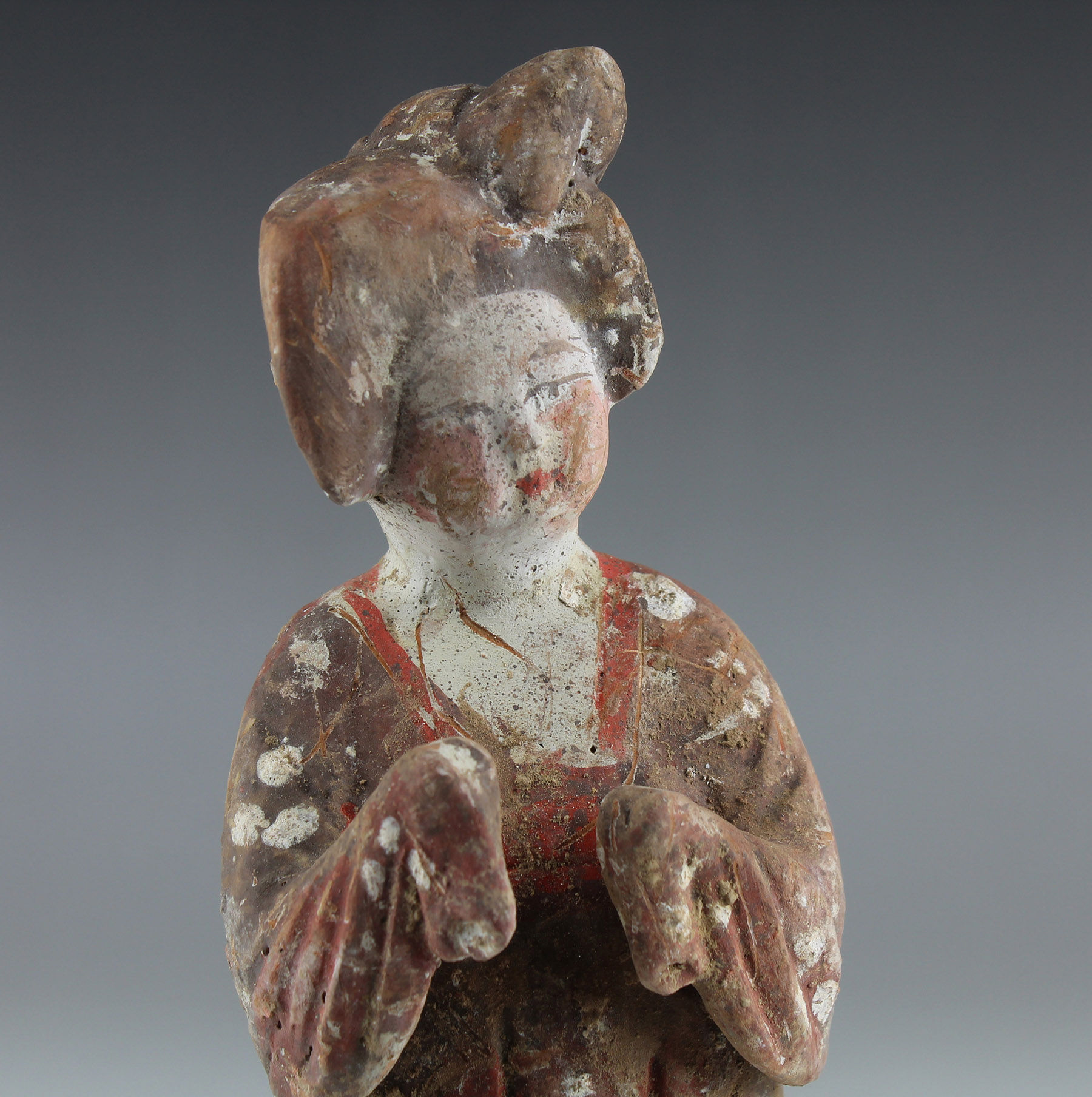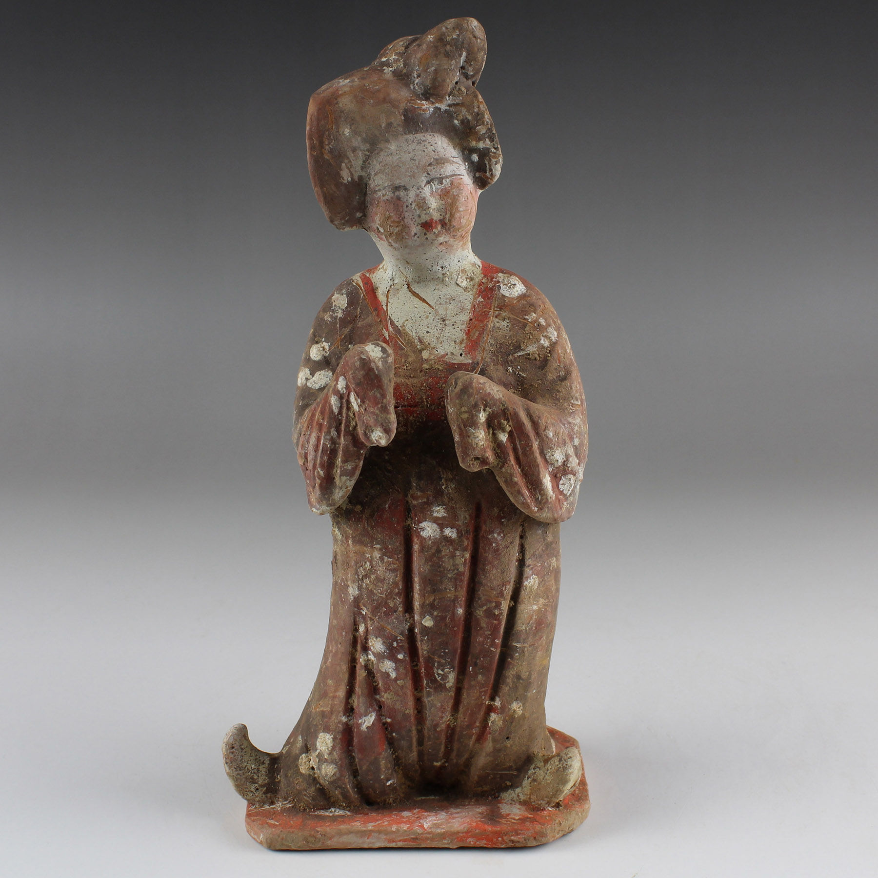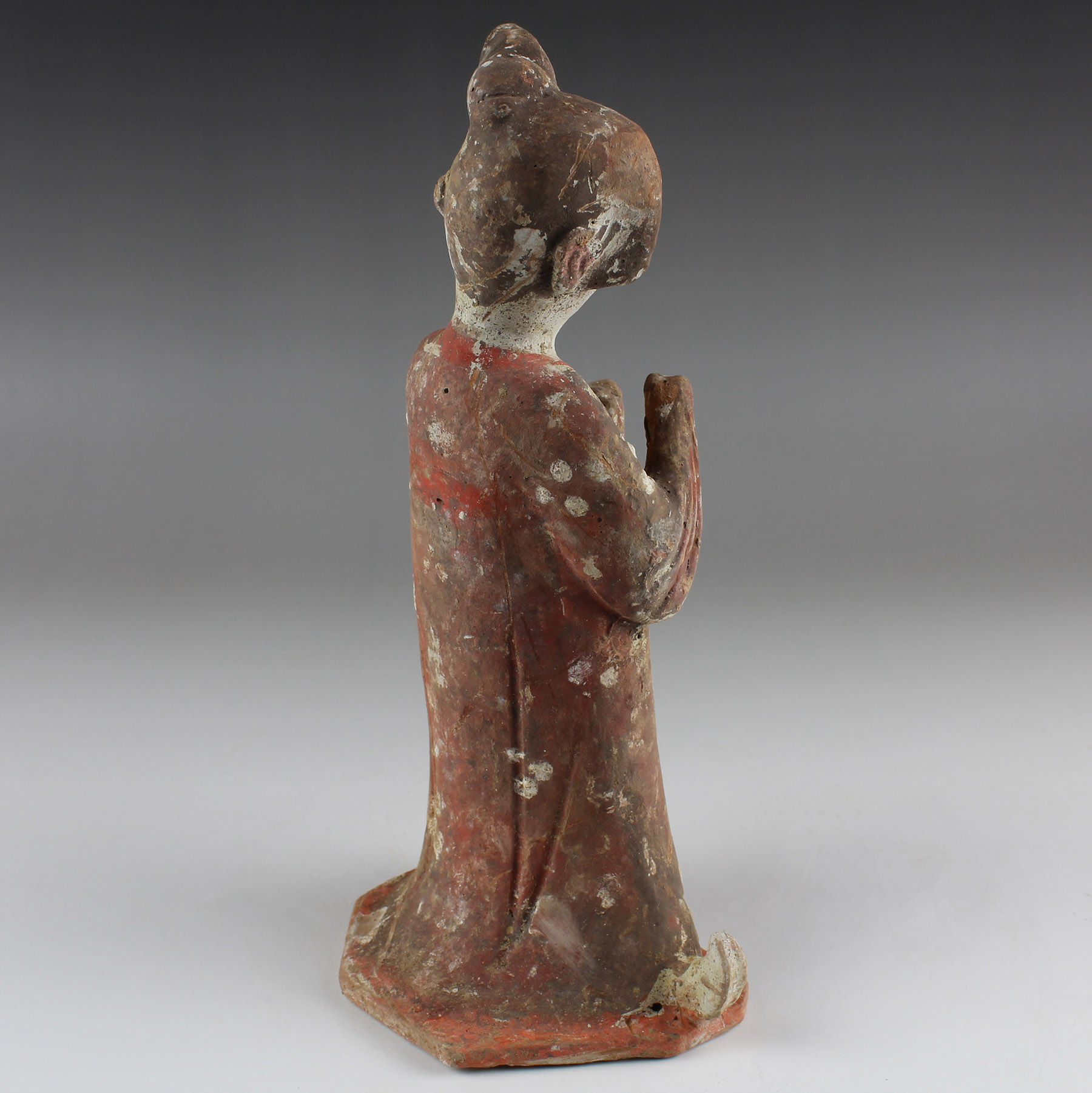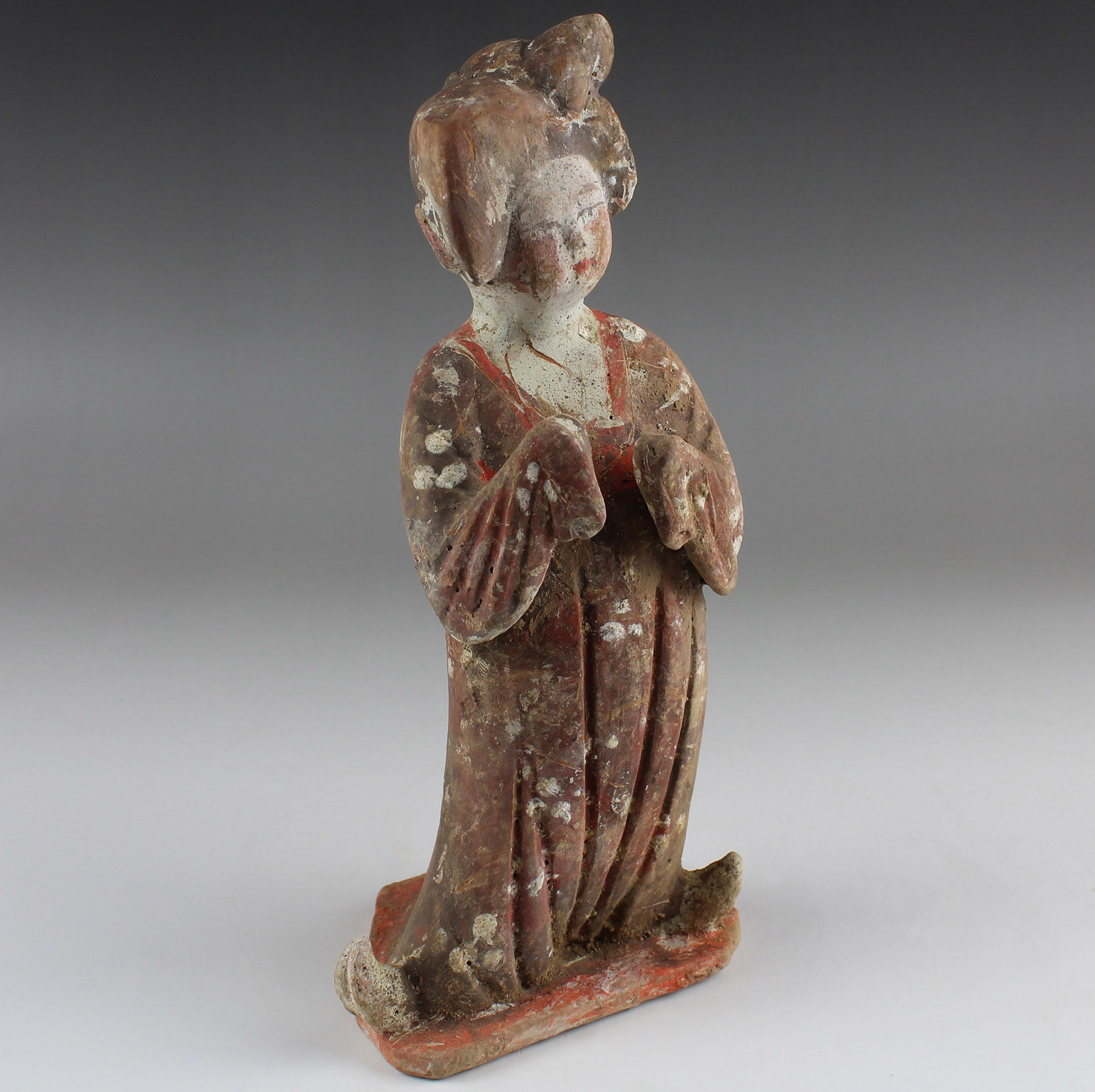 It is likely that the original purpose of the figure was that of a mingqi, terracotta figures designed to be included in a burial in order to accompany the deceased in the afterlife for protection, service and companionship.