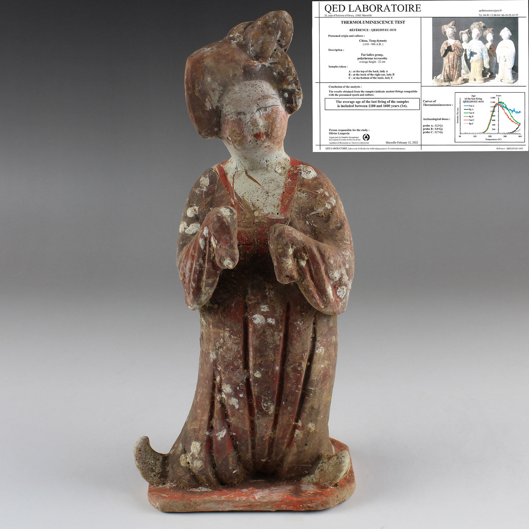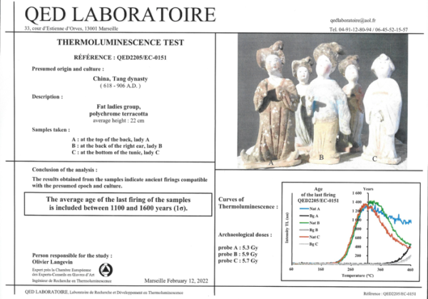 | CONDITION | Good condition. Includes Thermoluminescence test by QED Laboratoire (Reference QED2205/EC-0151) |