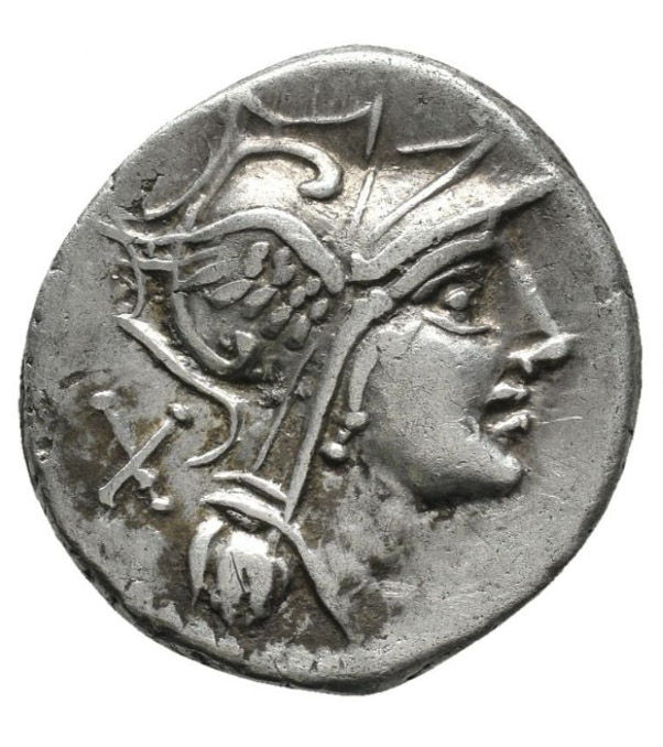 | OBVERSE | Helmeted head of Roma right, control mark behind (X) |