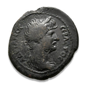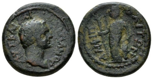 | OBVERSE | AYT KAIΣARho; ΔOMITIANOΣ, laureate head right |