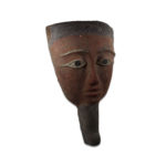 Wooden mummy masks from ancient Egypt, particularly during the Greco-Roman period, were remarkable artifacts that played a multifaceted role in the funerary customs of the time. These masks were not merely functional but also held deep religious significance. Crafted with meticulous detail, they depicted the likeness of the deceased and served as a visual representation of the individual’s identity in the afterlife. Their placement over the mummy’s head was believed to help the soul recognize and reunite with its body in the realm of the dead. Furthermore, these masks were designed to protect the deceased on their perilous journey through the afterlife, guarding against malevolent forces and ensuring a safe passage.