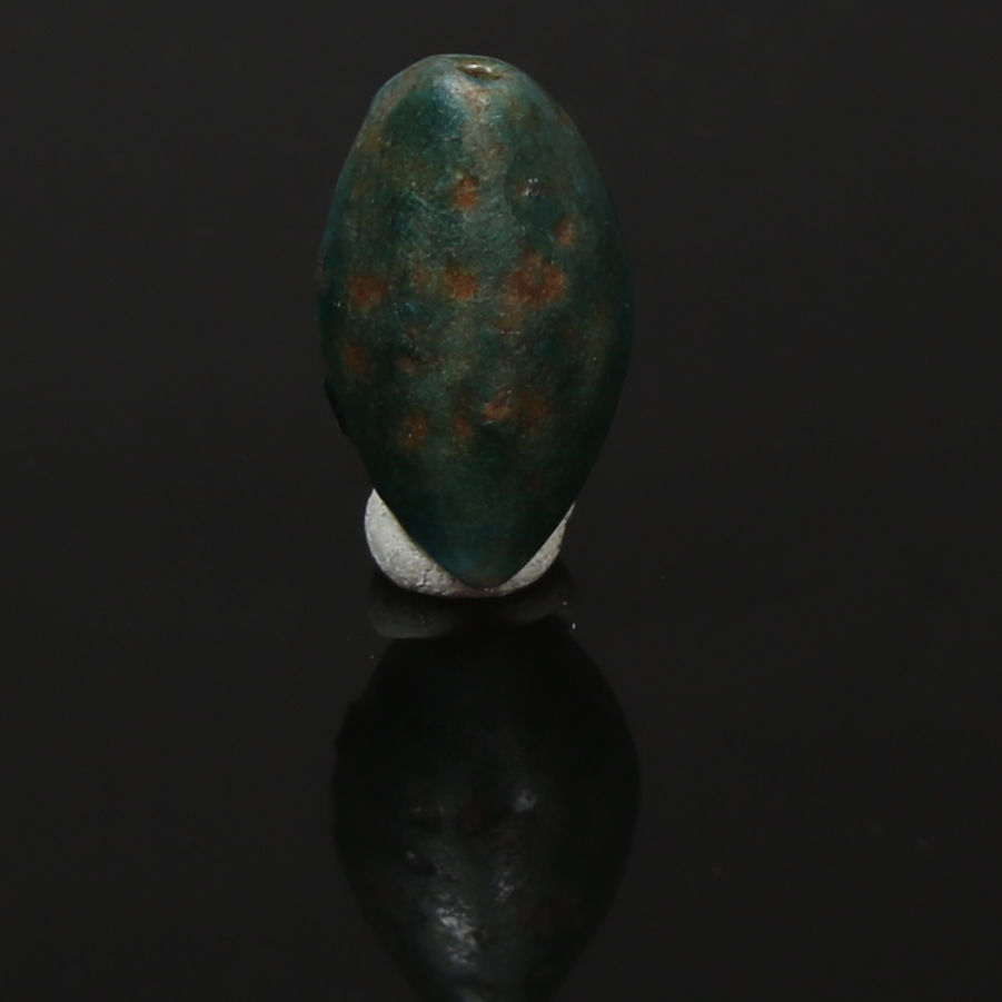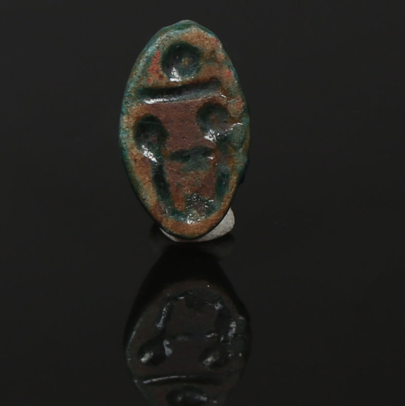 During the Hyksos period, which lasted from approximately 1650 to 1550 BCE, Egypt was ruled by foreign invaders known as the Hyksos, who originated from the Levant. The Hyksos introduced new cultural influences and artistic styles to Egypt, including the production of cowroid amulets made from faience. These amulets were popular among both the Hyksos rulers and the native Egyptian population, reflecting a syncretism of religious beliefs and cultural practices during this period of political and social upheaval.
