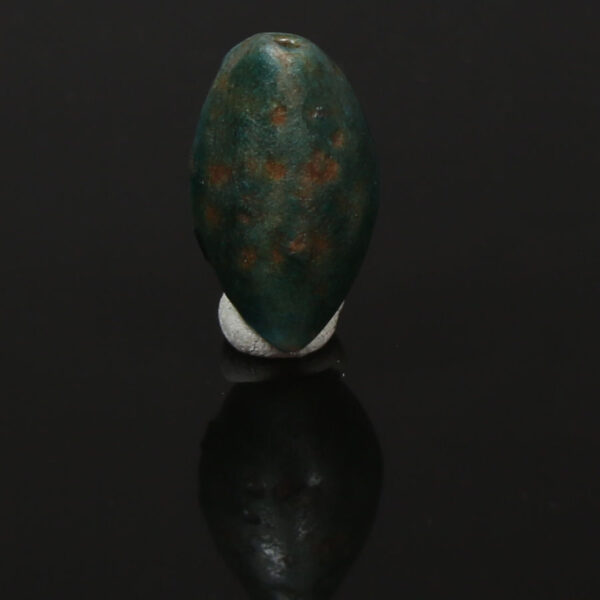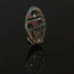 The term “cowroid” refers to a specific type of amulet or charm that was commonly produced during the Hyksos period in ancient Egypt. These cowroid amulets were typically made from faience, a type of glazed ceramic material composed of silica, quartz, and alkaline salts. Cowroid amulets were shaped like the seed of the colocynth fruit, which resembles a stylized heart with a flat base and a slightly pointed tip. They were believed to possess protective and magical properties, serving as talismans against evil forces and providing the wearer with divine favor and protection.