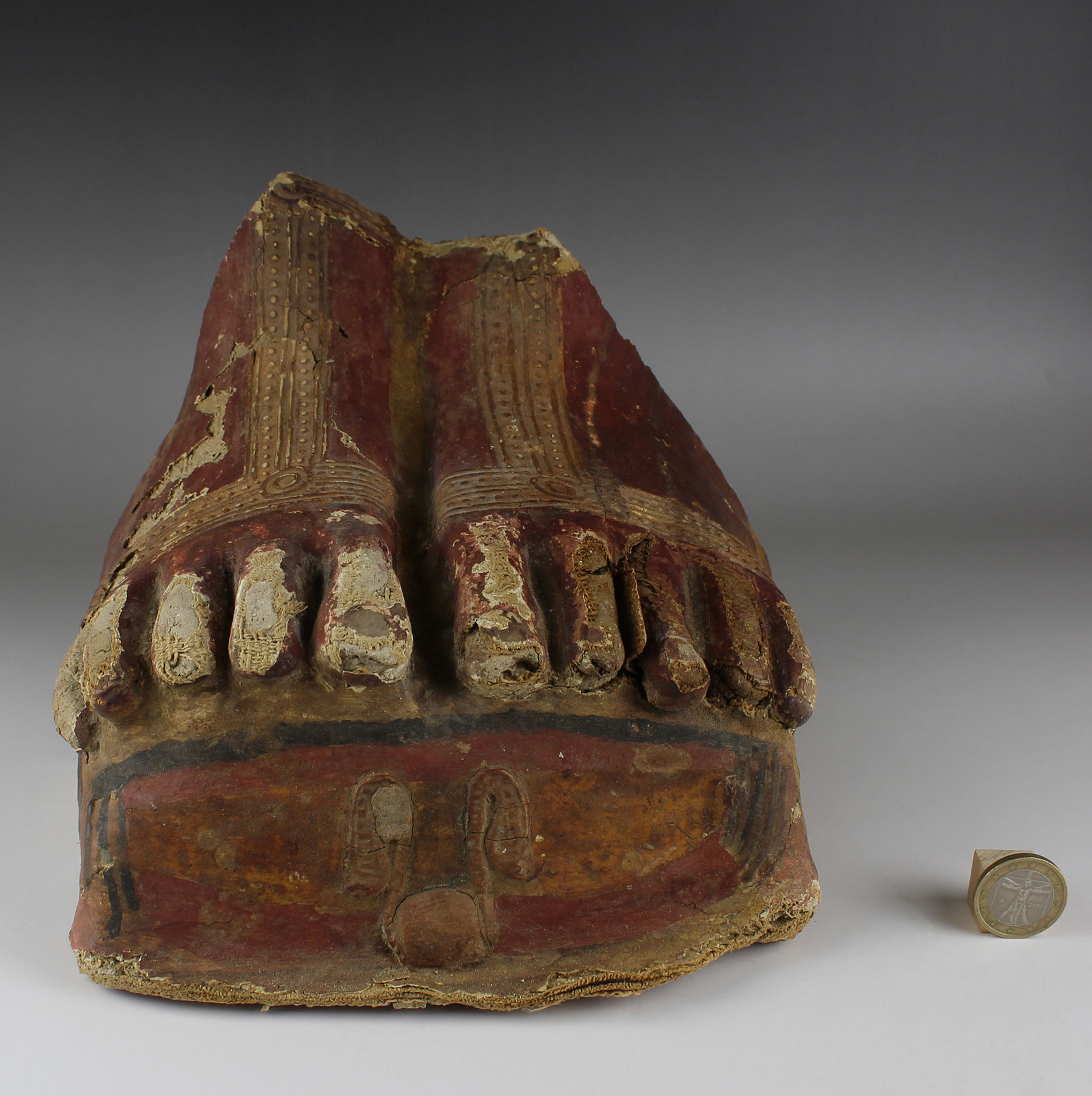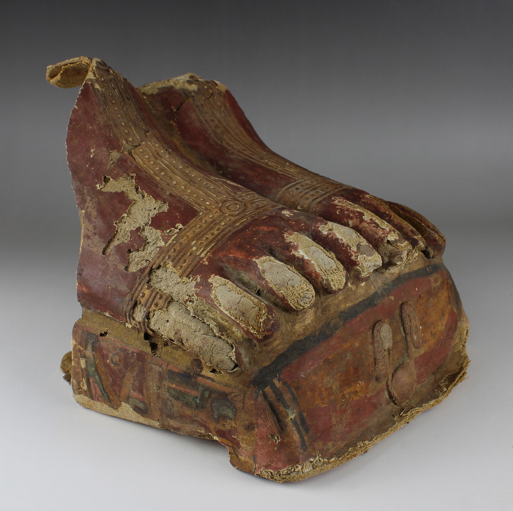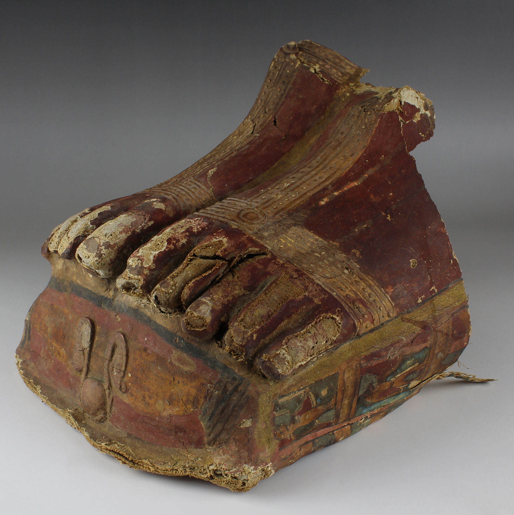 | ITEM | Painted cartonnage foot from a mummy sarcophagus and loose fragments |