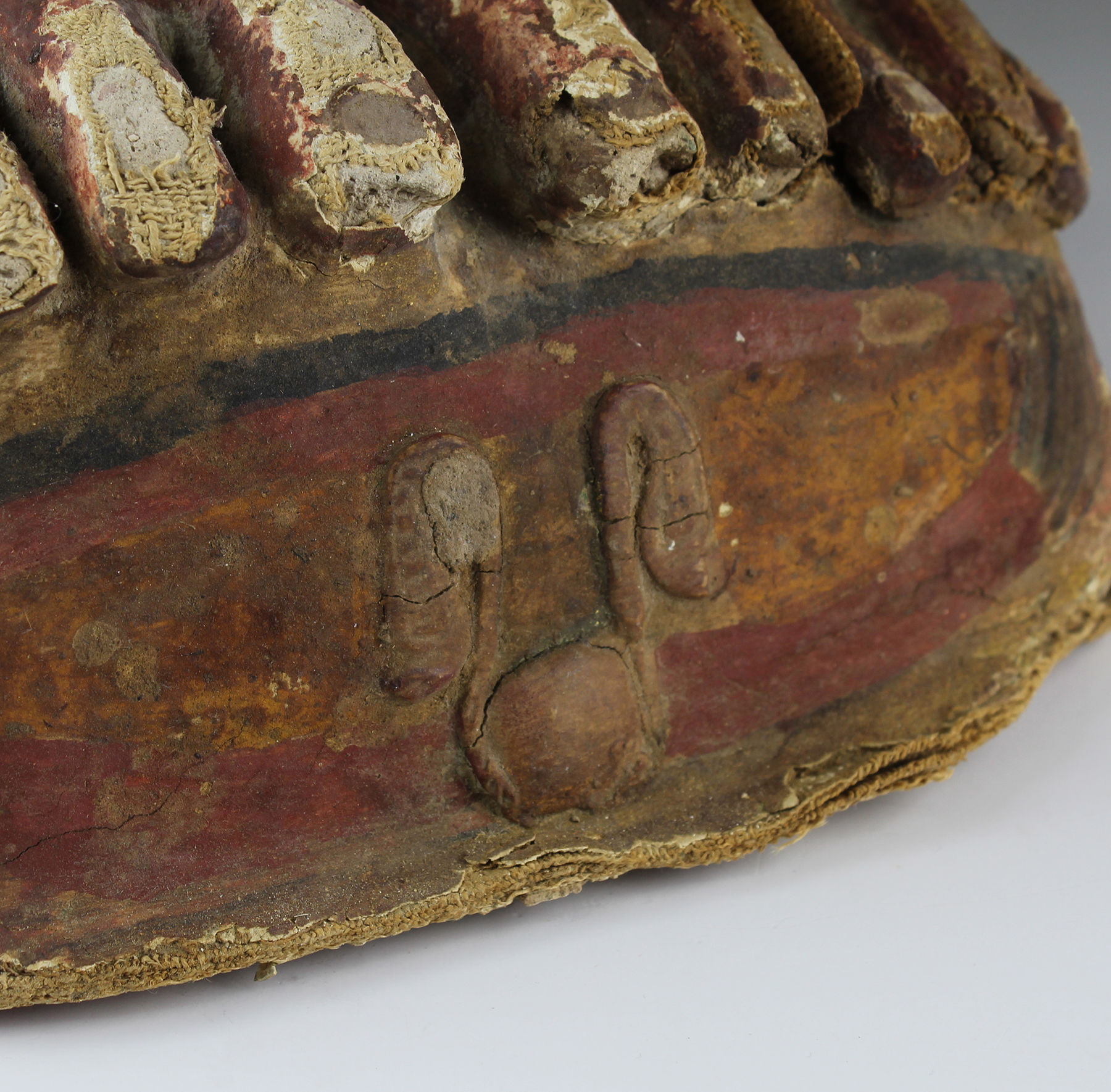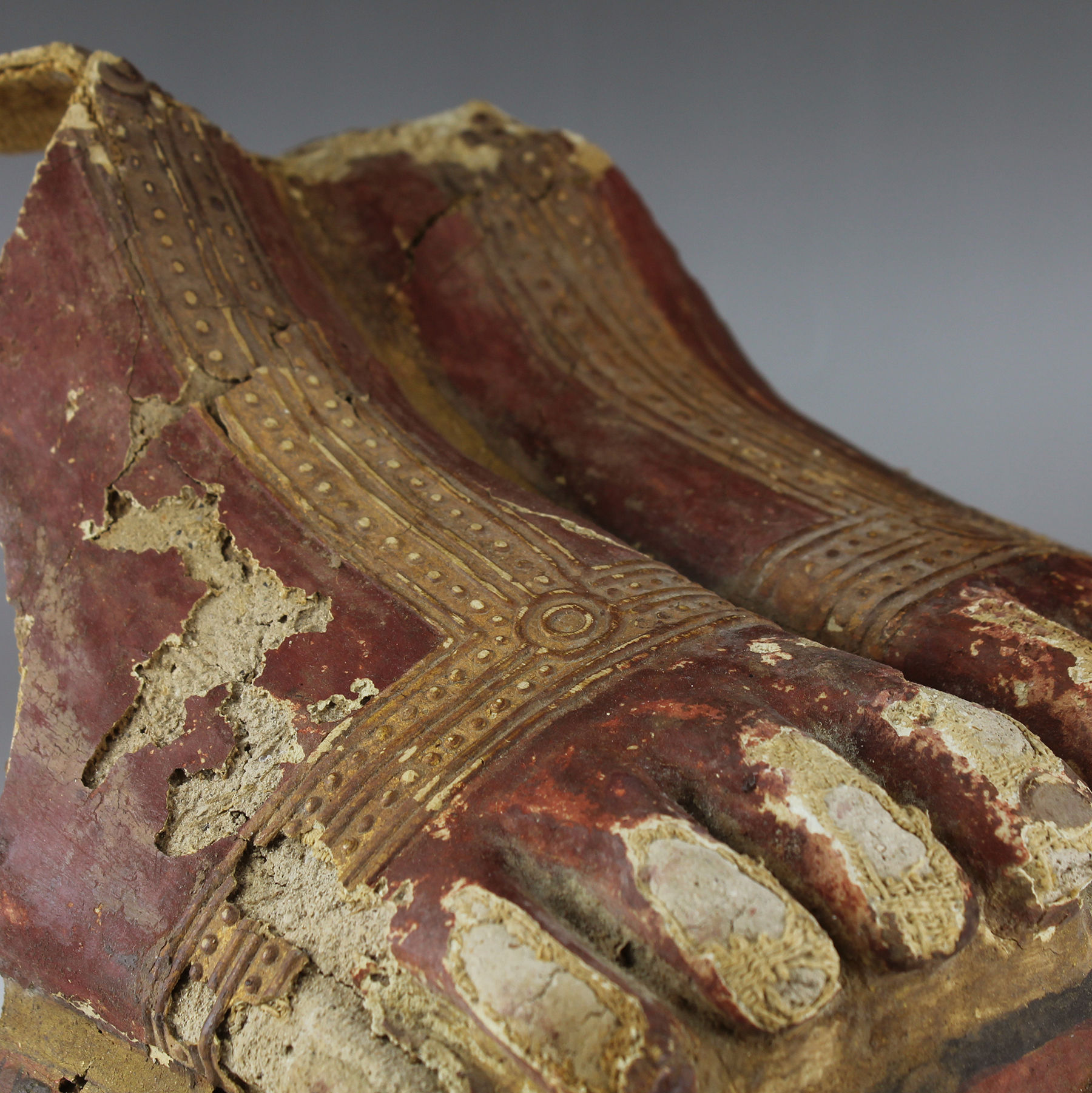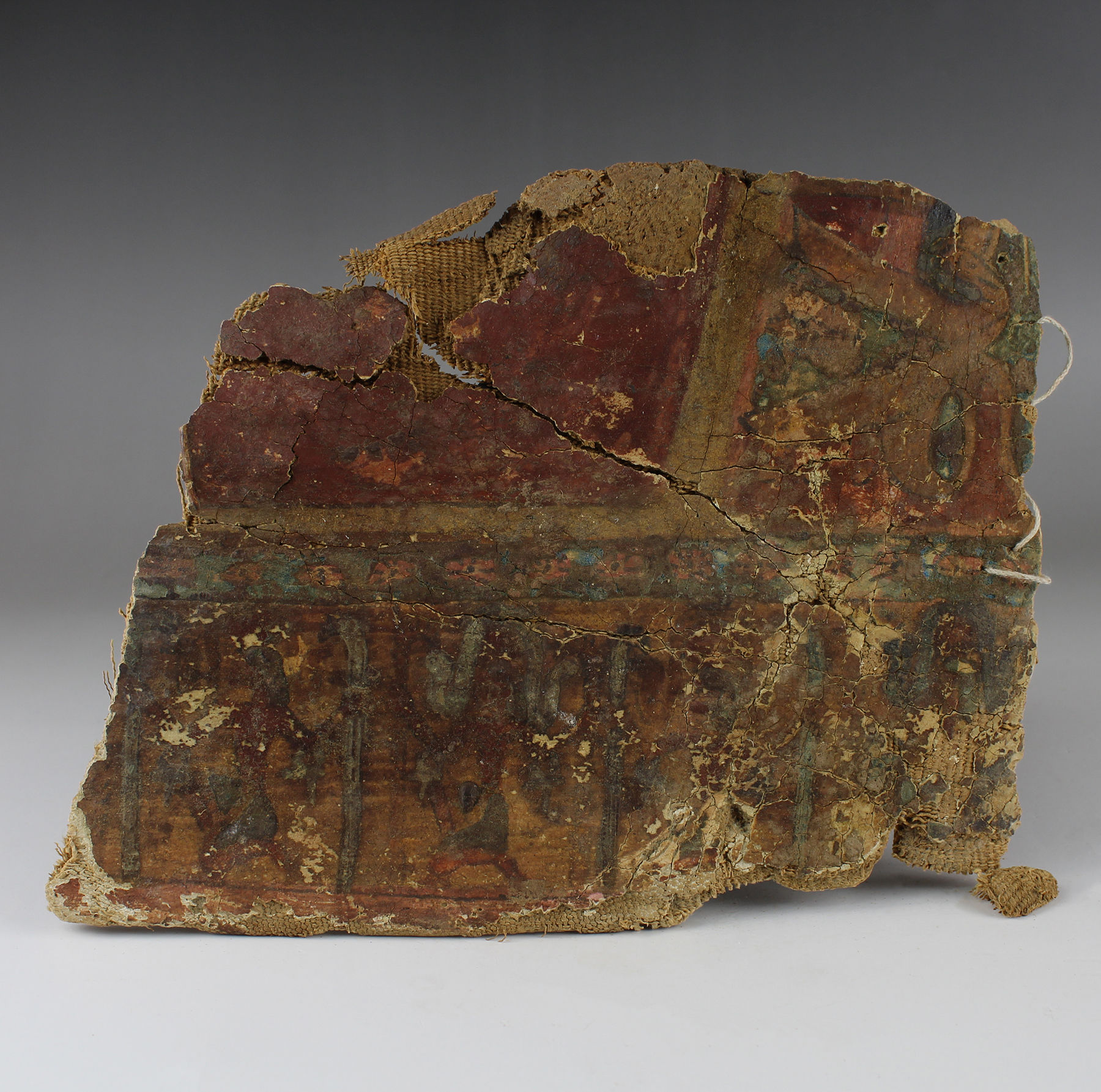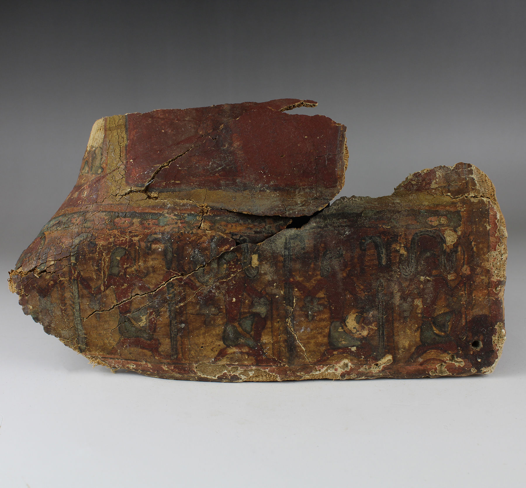 | ITEM | Painted cartonnage foot from a mummy sarcophagus and loose fragments |