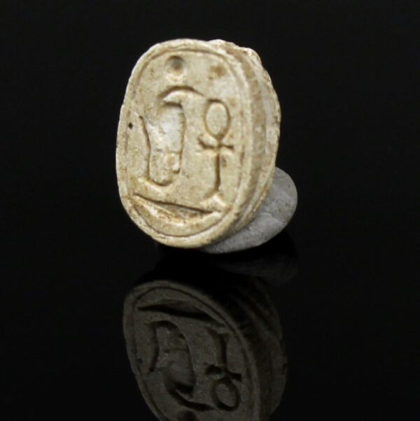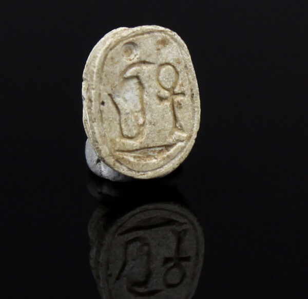 The Amun trigram, consisting of three symbols representing the god Amun, was associated with divine protection and power. Amun was one of the most important gods in the Egyptian pantheon, often depicted as a man with a ram’s head or as a ram itself. The inclusion of the Amun trigram on scarabs indicated a connection to this powerful deity, suggesting that the wearer sought Amun’s favor and blessings for protection and prosperity.
