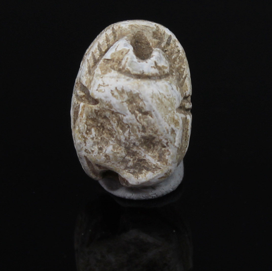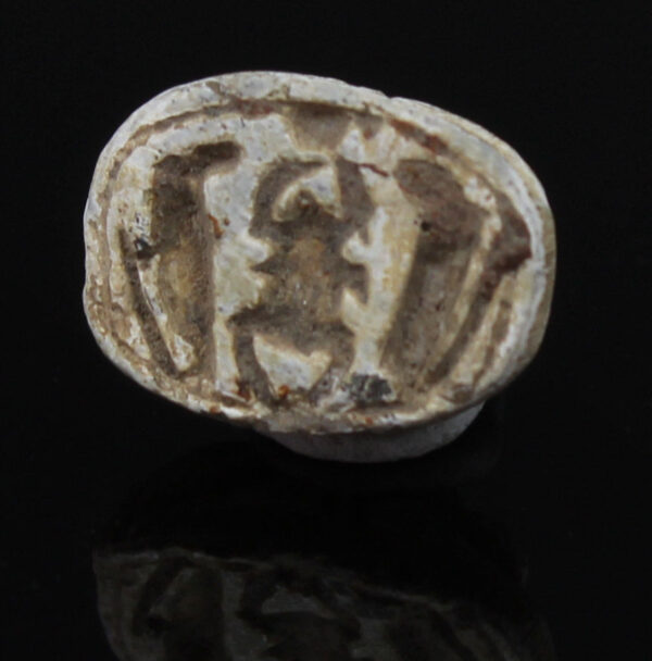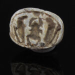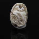 Scarab amulets were used for their magical rejuvenating properties by both the living and the dead. Scarabs were used by living individuals as seals from the start of the Middle Kingdom (ca. 2055 BCE) onwards. The most common inscription for these scarabs was the owner’s name. The incised design was often a schematic combination of hieroglyphs and geometric patterning. Patterns could often denote the specific administrative office held by the wearer.