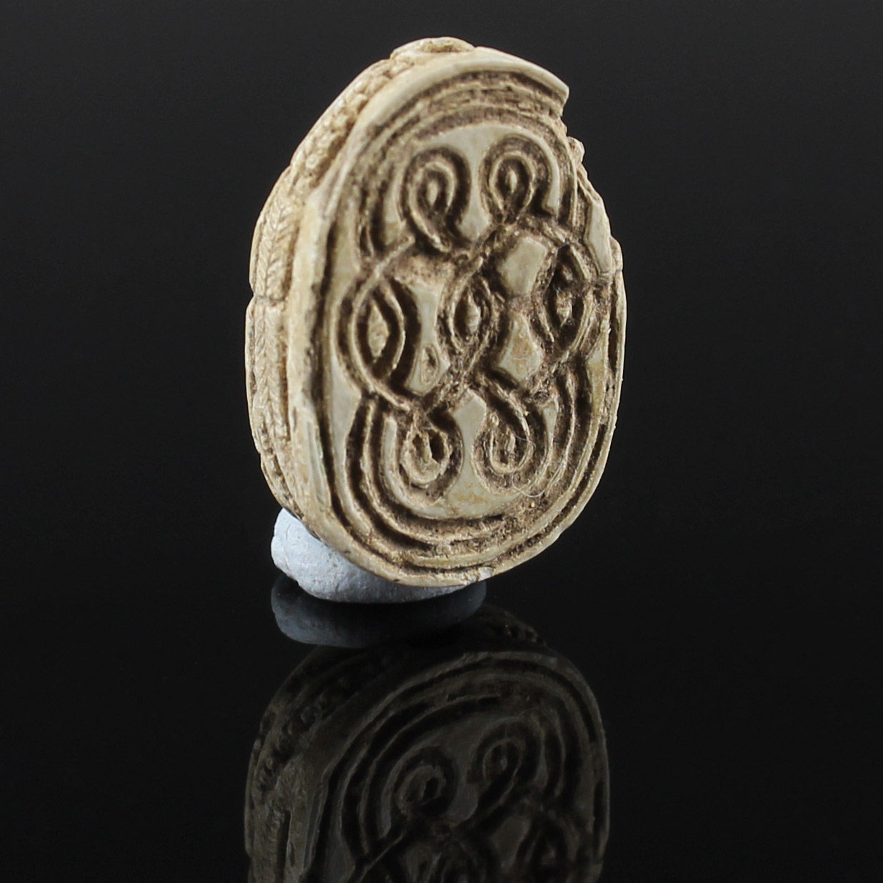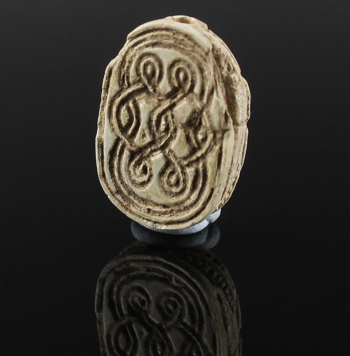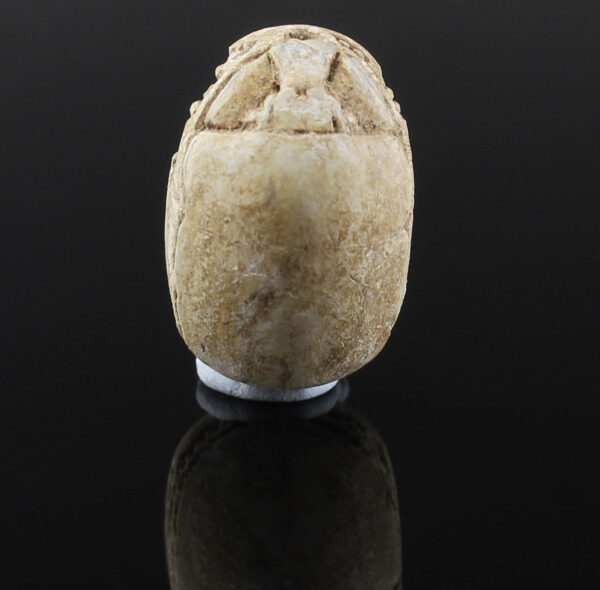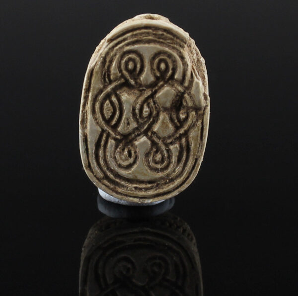 Scarab amulets were used for their magical rejuvenating properties by both the living and the dead. Scarabs were used by living individuals as seals from the start of the Middle Kingdom (ca. 2055 BCE) onwards. The most common inscription for these scarabs was the owner’s name. The incised design was often a schematic combination of hieroglyphs and geometric patterning. Patterns could often denote the specific administrative office held by the wearer.