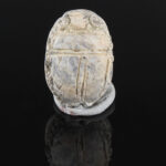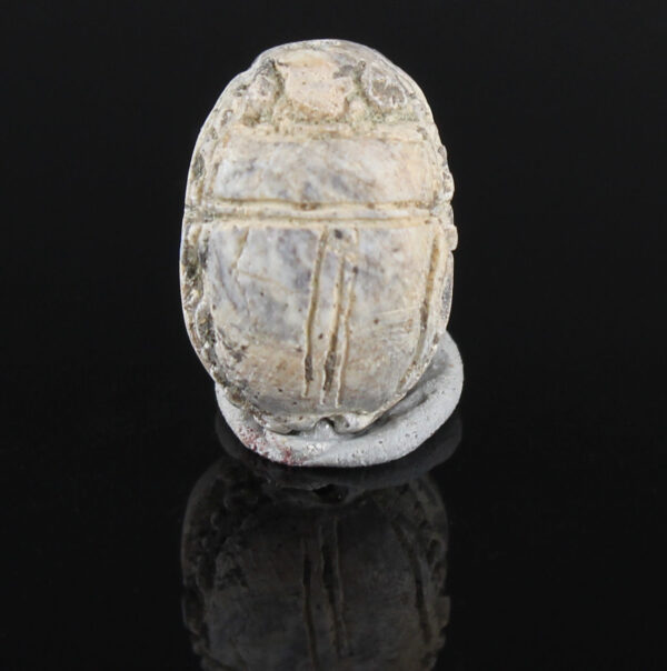 Scarab amulets were used for their magical rejuvenating properties by both the living and the dead. Scarabs were used by living individuals as seals from the start of the Middle Kingdom (ca. 2055 BCE) onwards. The most common inscription for these scarabs was the owner’s name. The incised design was often a schematic combination of hieroglyphs and geometric patterning. Patterns could often denote the specific administrative office held by the wearer.