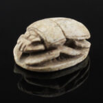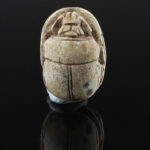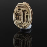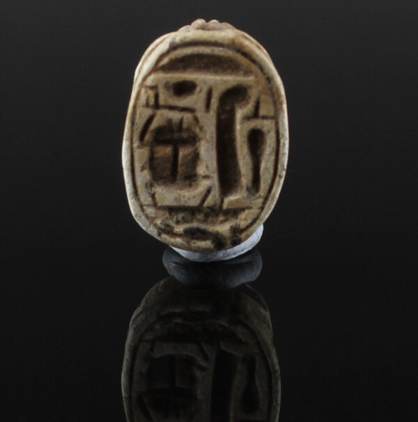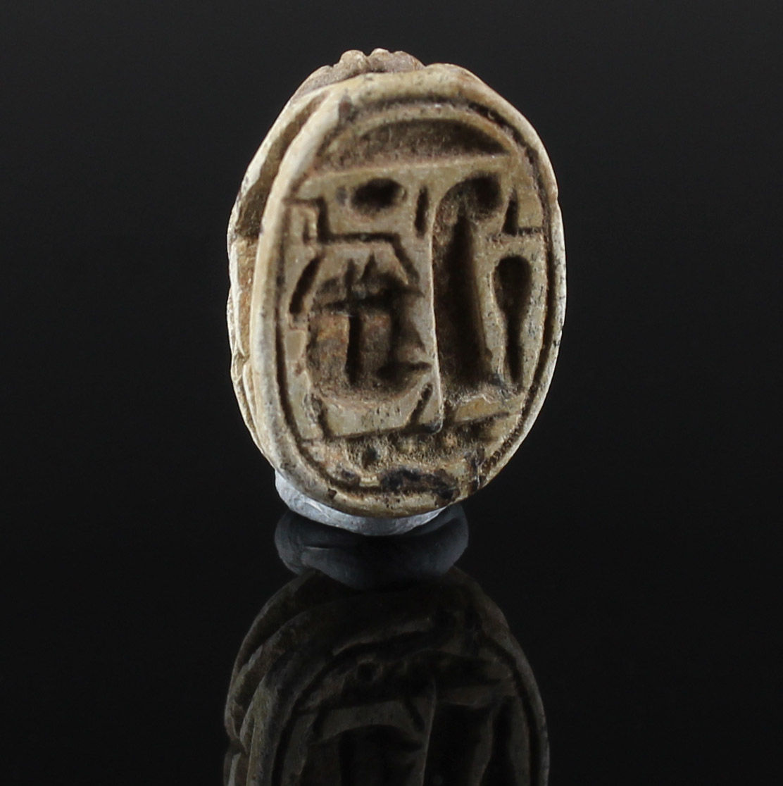 Scarab amulets were used for their magical rejuvenating properties by both the living and the dead. Scarabs were used by living individuals as seals from the start of the Middle Kingdom (ca. 2055 BCE) onwards. The most common inscription for these scarabs was the owner’s name. The incised design was often a schematic combination of hieroglyphs and geometric patterning. Patterns could often denote the specific administrative office held by the wearer.