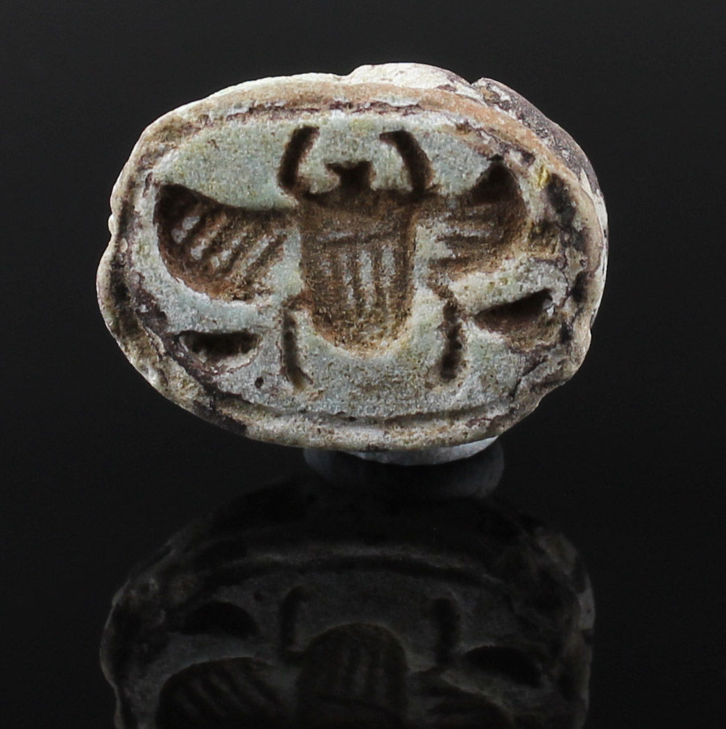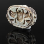 Scarab amulets were used for their magical rejuvenating properties by both the living and the dead. Scarabs were used by living individuals as seals from the start of the Middle Kingdom (ca. 2055 BCE) onwards. The most common inscription for these scarabs was the owner’s name. The incised design was often a schematic combination of hieroglyphs and geometric patterning. Patterns could often denote the specific administrative office held by the wearer.