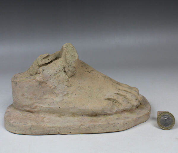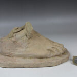 Terracotta votive statues, statuettes, heads, busts, infants, and anatomical parts were common dedications to a kourotrophos at her sanctuaries in Etruria, Latium, and Campania. Examples are scattered worldwide in museums and private collections.