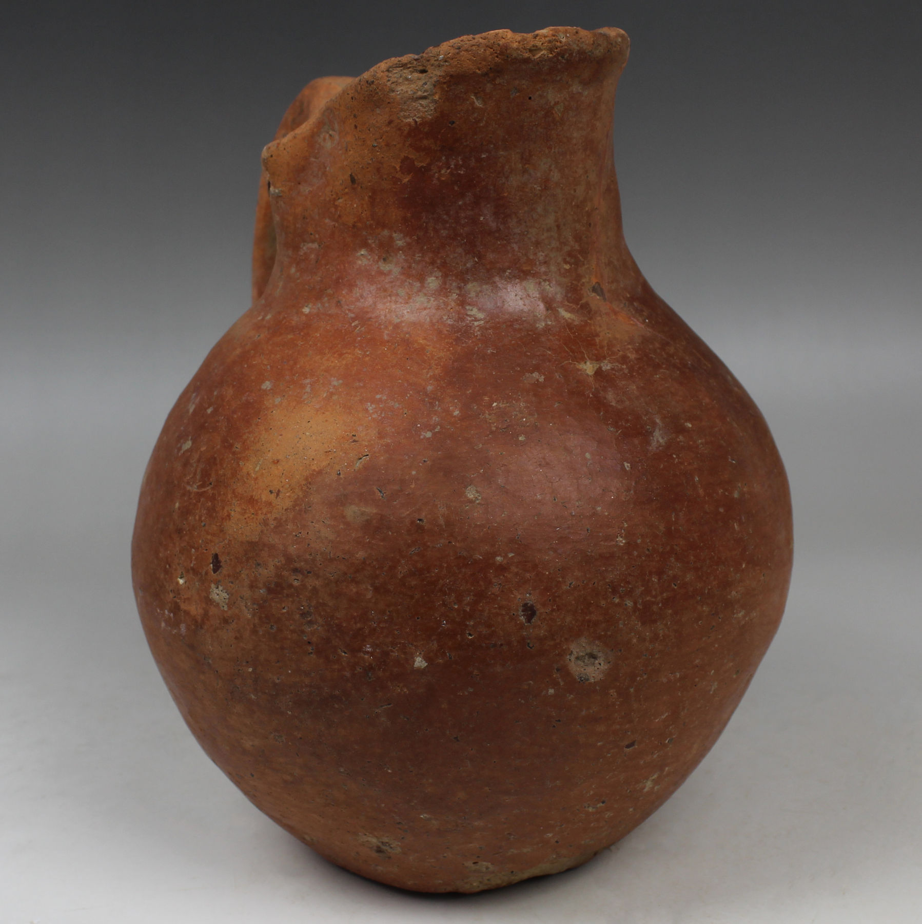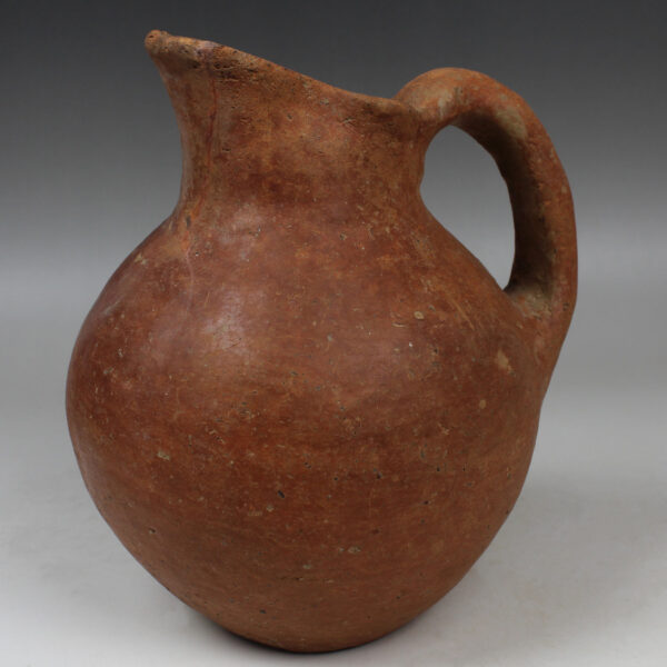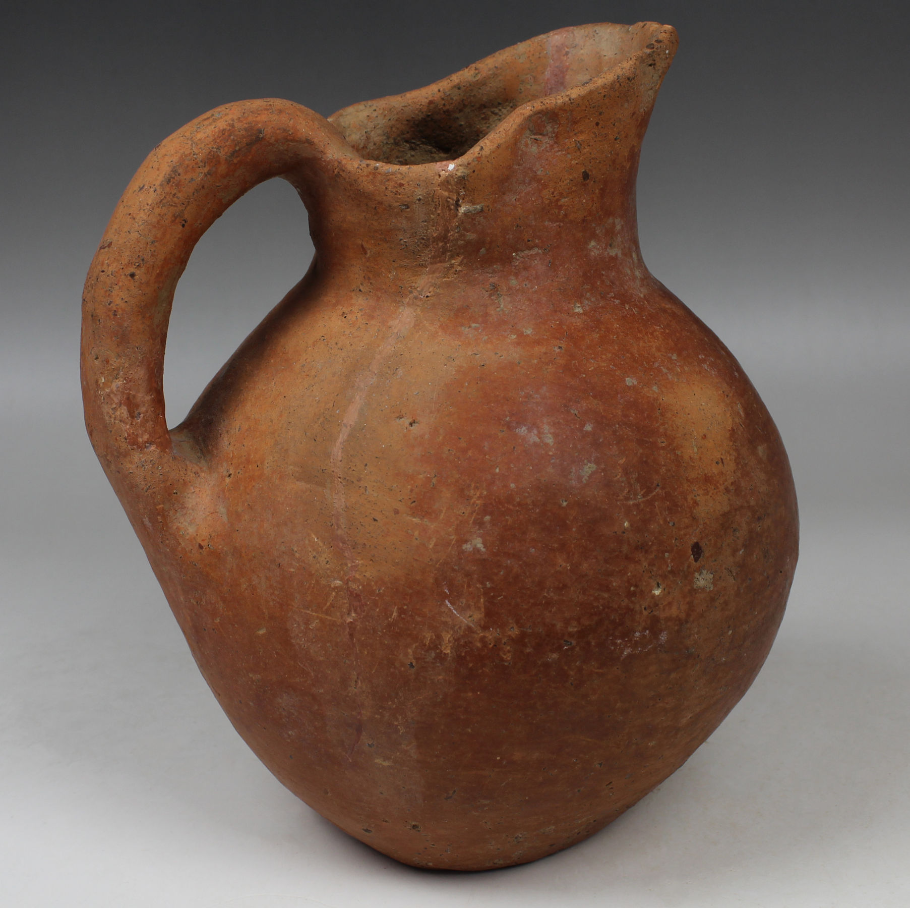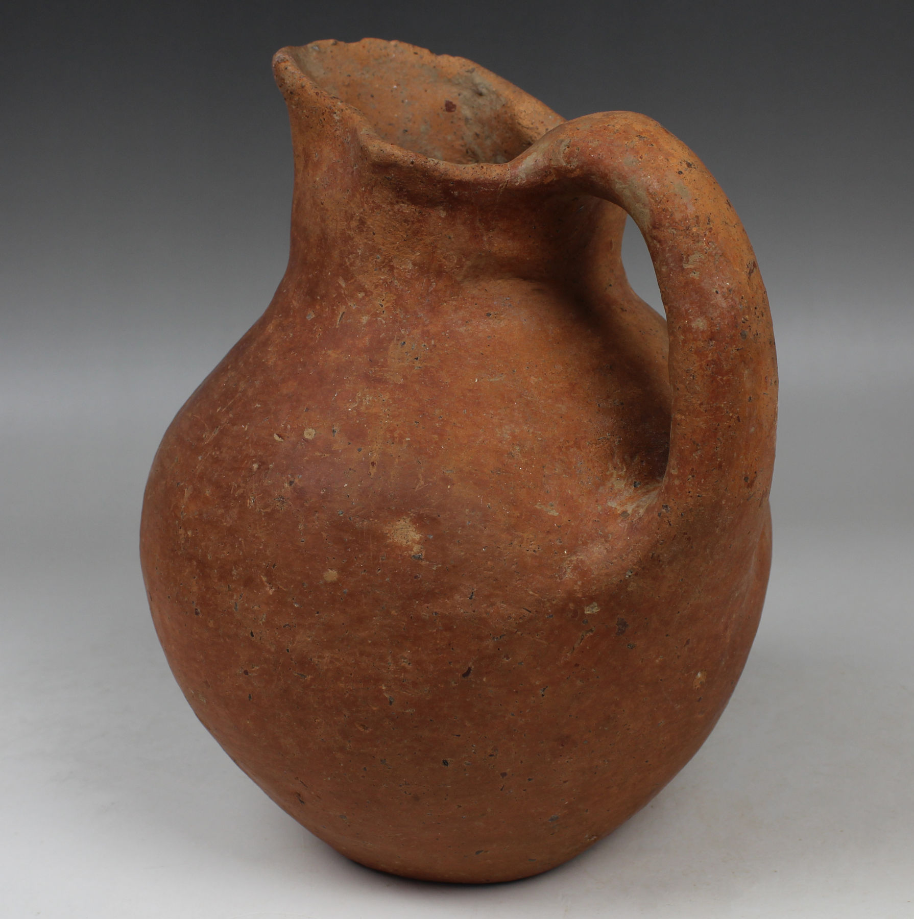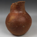 Etruscan pottery from the 7th century B.C. offers a fascinating glimpse into the artistic and cultural developments of the Etruscan civilization in ancient Italy. During this period, Etruscan pottery was characterized by its distinctive shapes, such as the bucchero ware, which was crafted using a unique black ceramic technique. Bucchero pottery was wheel-thrown and then fired in an oxygen-restricted environment to produce its dark, shiny surface. These vessels often featured intricate incised or molded designs, depicting various motifs, including human and animal figures, mythical creatures, and geometric patterns. The 7th century B.C. also marked the transition from Orientalizing influences, which were prevalent in earlier Etruscan pottery, to a more indigenous Etruscan style, with an emphasis on the depiction of daily life, rituals, and religious themes.