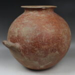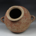 Etruscan stamnoi display a range of decorative styles, reflecting the strong influence of Greek pottery, particularly the black-figure and red-figure techniques, alongside local Etruscan ceramic traditions. Earlier examples, like those made of the distinctive black, lustrous bucchero pottery (7th-5th century BCE), were often adorned with incised lines, molded designs, or abstract, geometric, and animal friezes. Later Etruscan stamnoi mirrored Greek vase painting, utilizing the black-figure or the unique local “pseudo-red-figure” technique where figures were painted on a black slip. Renowned Etruscan workshops, such as the Group of Munich 883/Pittore dell’Ancile and the Micali Painter (active in Vulci), produced figured stamnoi often featuring scenes related to Etruscan mythology, the underworld, or the Dionysiac cult.