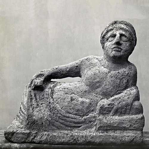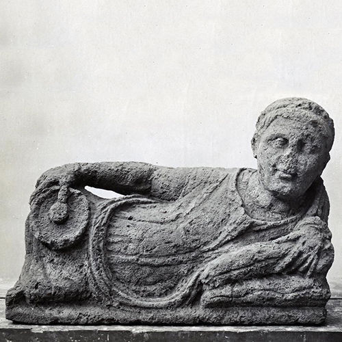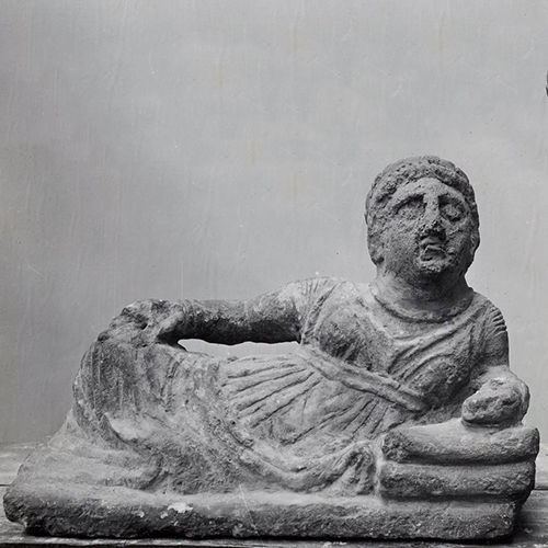| ITEM | Lid of a cinerary urn with a reclining figure |