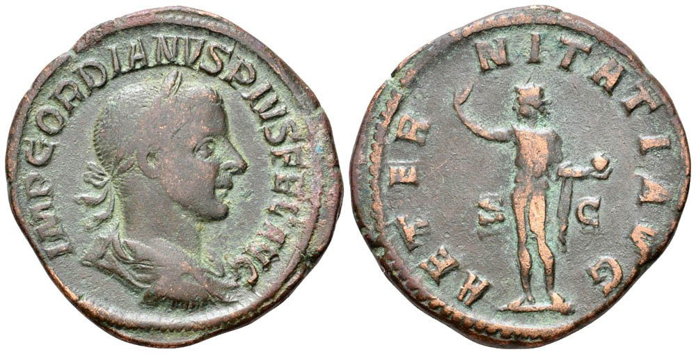 | OBVERSE | IMP GORDIANVS PIVS FEL AVG, laureate, draped and cuirassed bust right, seen from behind. |