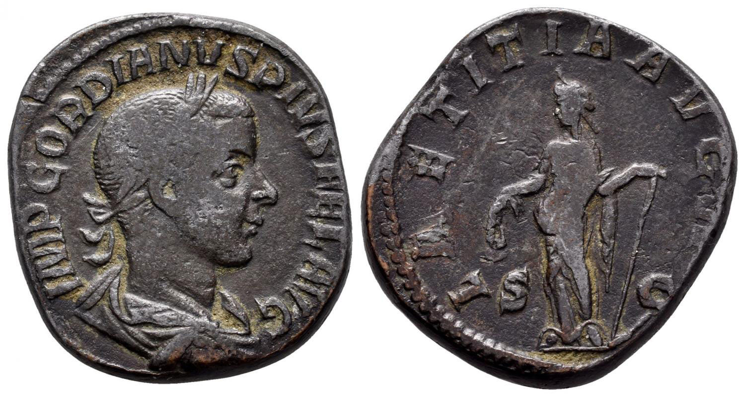 OBVERSEIMP GORDIANVS PIVS FEL AVG, laureate, draped and cuirassed bust right
