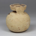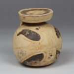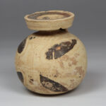 The aryballos with a quatrefoil motif is a distinctive type of ancient Greek vessel that emerged during the Geometric and Orientalizing periods (circa 900–600 BCE). The term “aryballos” refers to a small, globular container used to store oils, perfumes, or other precious substances. The quatrefoil motif, characterized by a four-lobed or four-petal design, was a common decorative element on these vessels. Aryballoi with quatrefoil motifs were often crafted from terracotta and decorated using the black-figure or red-figure techniques, which involved selectively applying slip (a liquid mixture of clay and water) to create contrasting images.