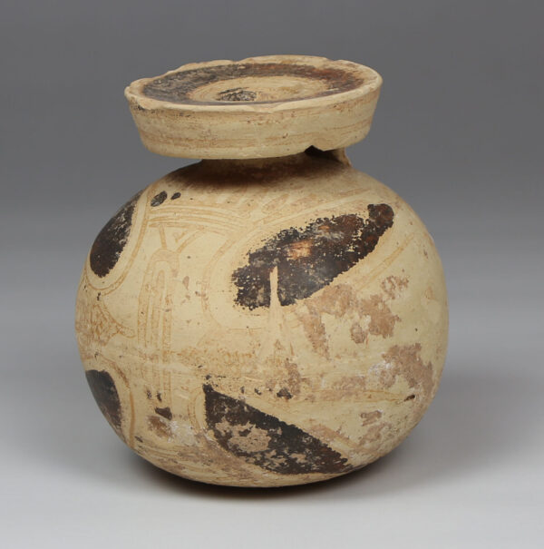 The quatrefoil motif on these aryballoi was not merely decorative but held symbolic and cultural significance. The motif is reminiscent of floral patterns and was likely inspired by nature. The four-lobed design could represent various symbolic concepts such as symmetry, balance, or the four seasons. Additionally, in ancient Greek art, the use of geometric and floral motifs often carried deeper meanings related to religious beliefs, mythological narratives, or social customs.