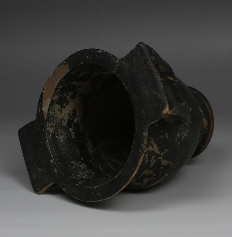 The decorative style of column kraters varied over time, reflecting different artistic trends in Greek pottery. Early examples from the Geometric and Orientalizing periods typically showcased simple, abstract patterns and motifs. By the Archaic and Classical periods, however, column kraters often featured elaborate scenes depicting mythological narratives, athletic competitions, and everyday life. The red-figure technique, which emerged around the 530 BCE, allowed artists to depict figures in greater detail and with more naturalistic poses compared to the earlier black-figure technique. This shift in artistic style enhanced the visual appeal and storytelling potential of the kraters.