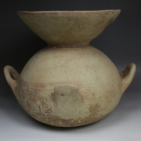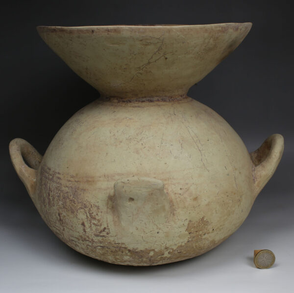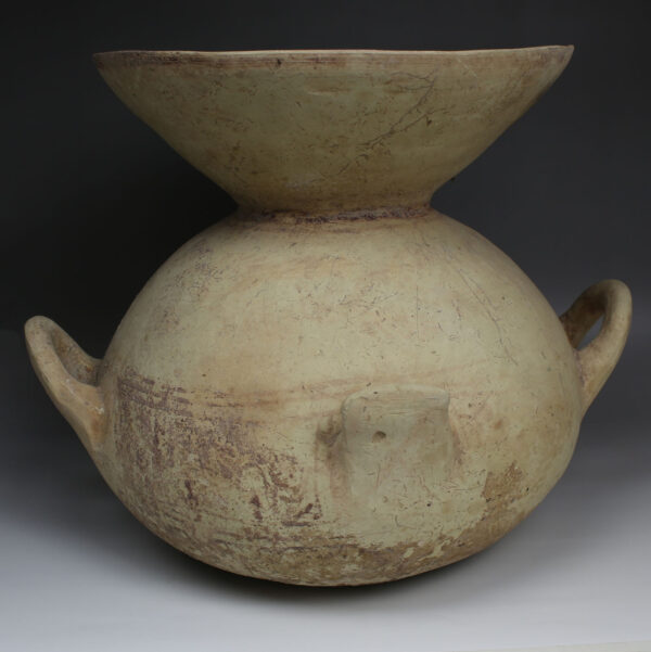 Archaeological findings of Daunian funnel kraters, especially in tombs and ceremonial sites, provide valuable insights into the social and ritual practices of the Daunian people. These vessels were not only used for practical purposes but also served as symbols of social status and cultural identity. The presence of funnel kraters in funerary contexts suggests that they held significant ritualistic and symbolic value, possibly related to the afterlife and the honoring of the deceased.