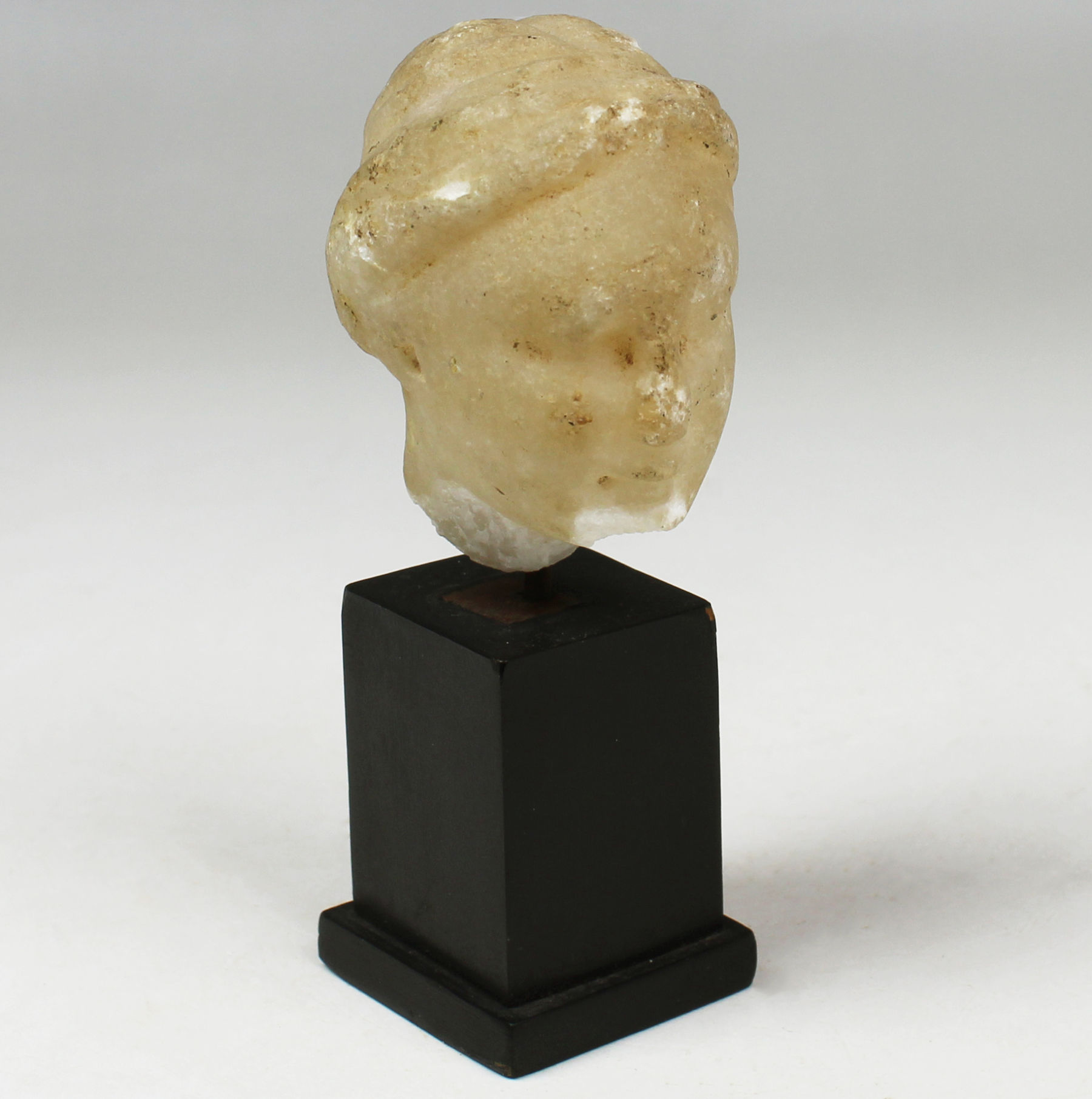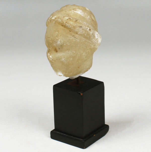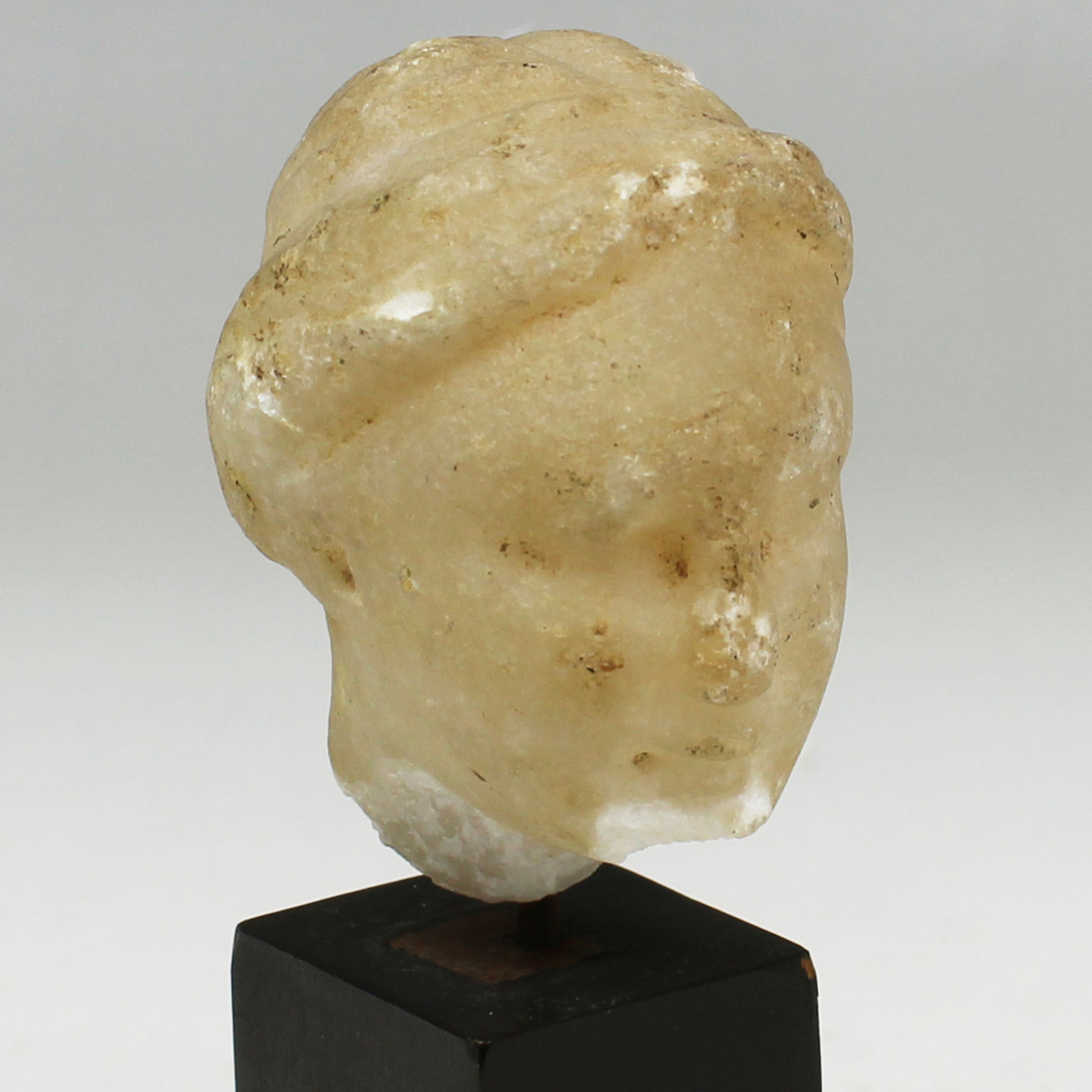 The Greek Hellenistic head in marble represents a distinctive phase in the evolution of ancient Greek art, known as the Hellenistic period, which spanned from the death of Alexander the Great in 323 BCE to the rise of the Roman Empire in the 1st century BCE. During this era, sculptors moved away from the idealized forms of Classical Greek art and embraced a more realistic and emotionally expressive style. The Hellenistic head in marble exemplifies this departure, capturing the nuances of human emotion and individuality with greater depth and subtlety.