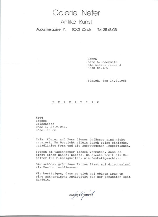 | CONDITION | Good condition. Includes expertise of Galerie Nefer (1988) |