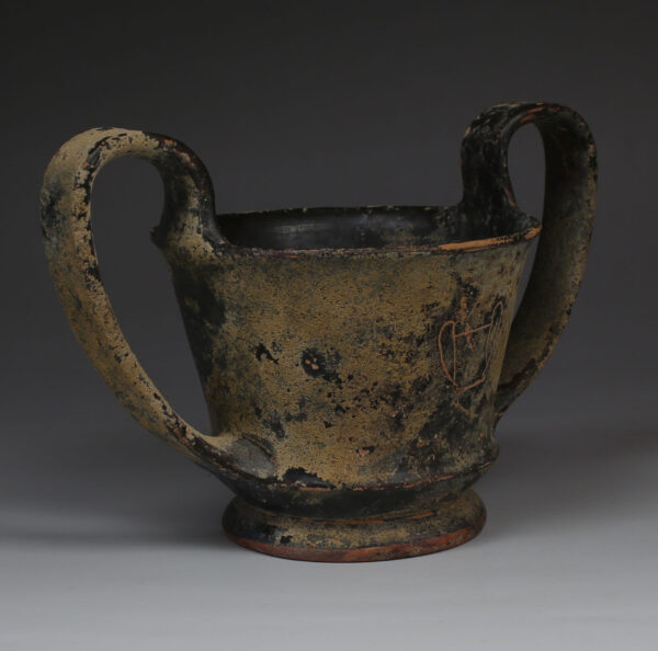 Some Greek pottery graffiti, however, is less formal and provides hints of humor, competition, or rivalry. In symposium settings, where drinking vessels were shared among a social group, people might inscribe playful taunts, boasts of drinking prowess, or even love messages on cups and kraters. This form of graffiti brings ancient personalities to life, showing that humor, camaraderie, and even conflict were as much a part of ancient Greek life as they are today. Occasionally, merchants would also inscribe prices or advertising slogans on vessels, pointing to the commercial practices surrounding pottery.