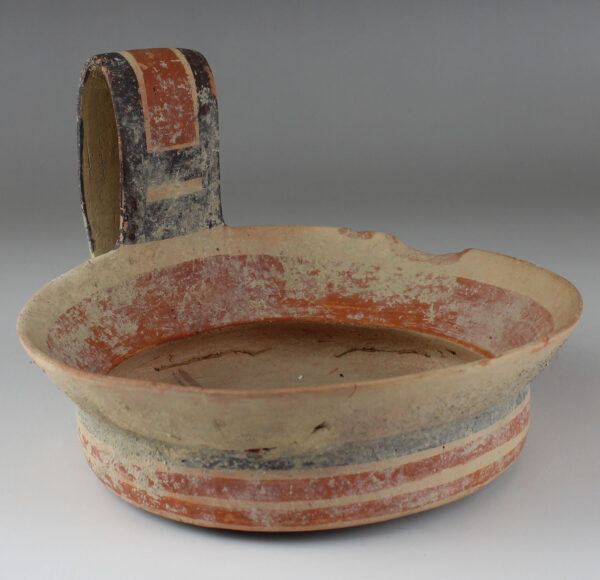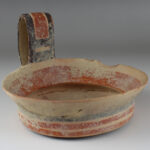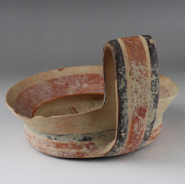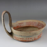 The Kyathos (from the ancient Greek κυαθος “ladle for wine”) is a Greek bowl-shaped glass with a high, rounded concavity and a characteristic high, elongated, vertical handle. It was used as a ladle to transfer the wine from the crater to the glasses. From the second half of the 5th century B.C. its production is very scarce.