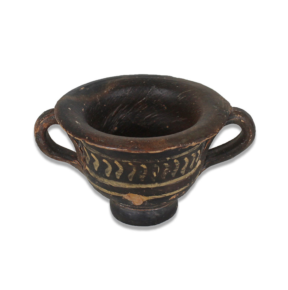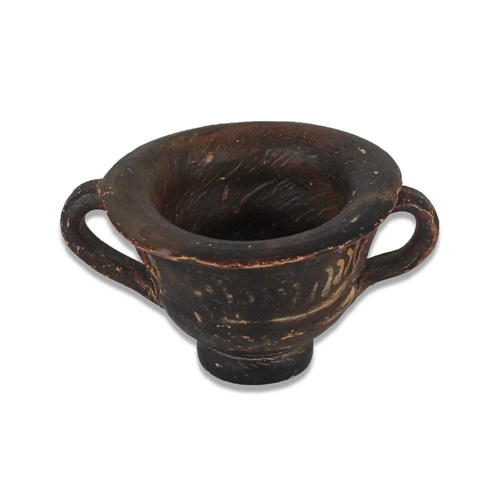 Xenon ware is a specific type of Apulian pottery, so named after a vase in Frankfurt (Beazley, EVP, p. 219,1.) inscribed with the name: XENON. The type is distinguished by added matt red decoration over black glaze. Miniature vases, perhaps toys or votives, are especially prevalent among this type of pottery.