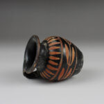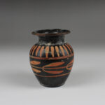 Xenon ware is a specific type of Apulian pottery, so named after a vase in Frankfurt (Beazley, EVP, p. 219,1.) inscribed with the name: XENON. The type is distinguished by added matt red decoration over black glaze. Miniature vases, perhaps toys or votives, are especially prevalent among this type of pottery.