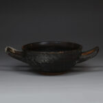 Much of the graffiti found on pottery falls into two main categories: ownership marks and dedications. In marketplaces and public gatherings, where pottery was bought, sold, and heavily circulated, marking one’s vessel could serve practical purposes. People often scratched their names or initials onto drinking cups, for example, to claim ownership or differentiate them from others. In some cases, especially in sanctuaries, individuals would leave inscriptions on pottery as offerings to the gods. These dedications could be as simple as “I am the cup of X,” denoting the owner or the deity to whom the vessel was dedicated. Such graffiti helps scholars understand the personalization of everyday objects in Greek society and offers clues to the names, identities, and social behaviors of individuals from all walks of life.
