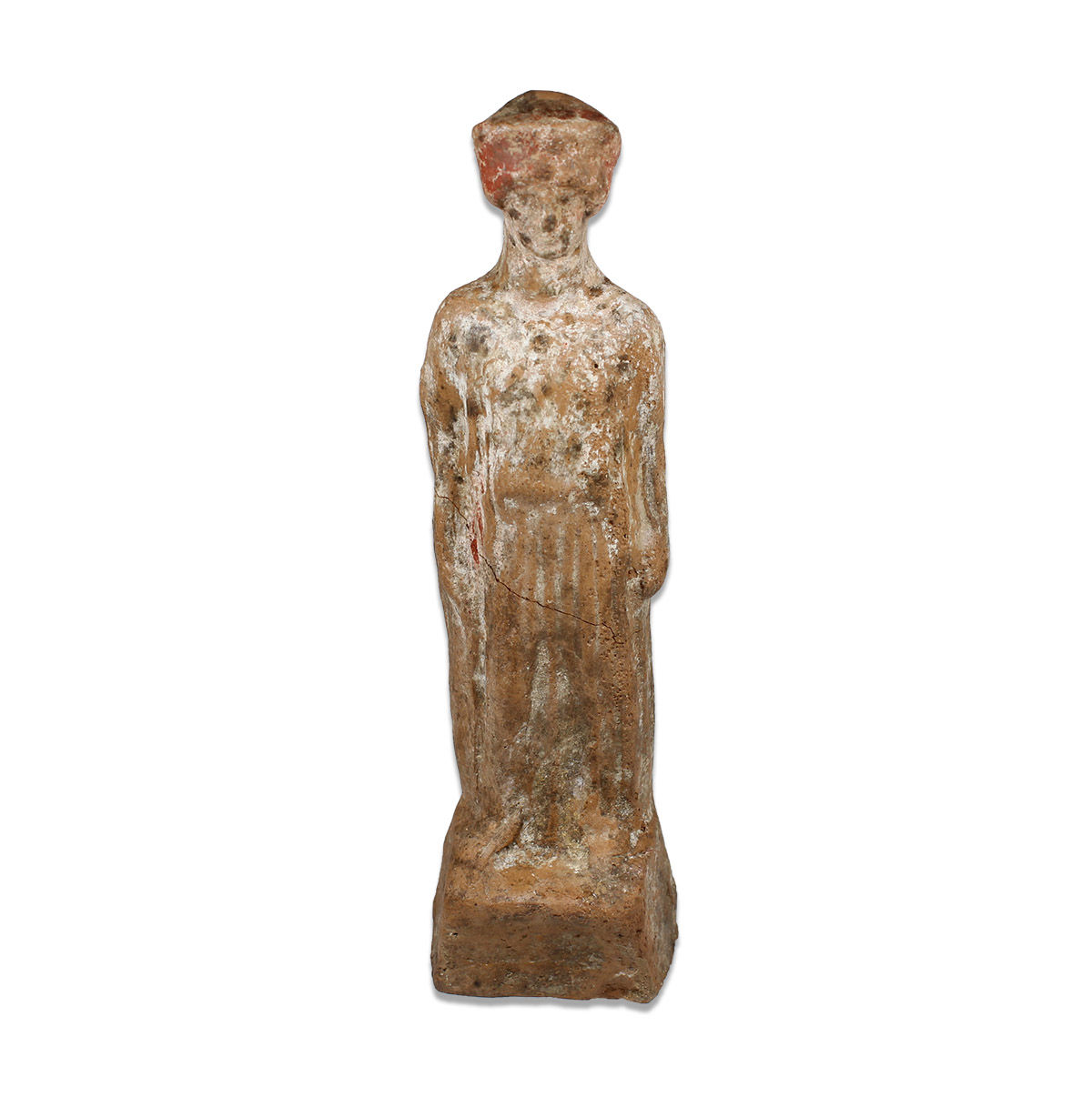 | ITEM | Statuette of a standing goddess wearing a red polos |