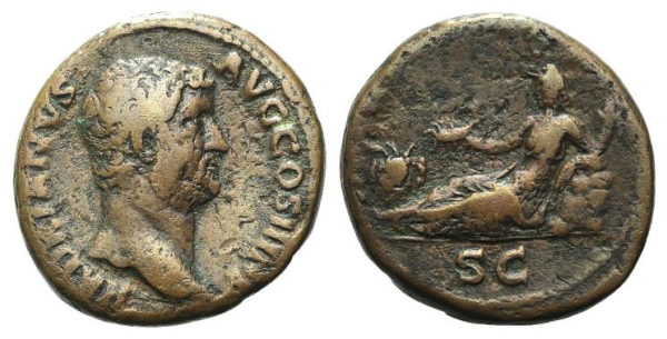 | OBVERSE | HADRIANVS AVG COS III P P Bare head right |
