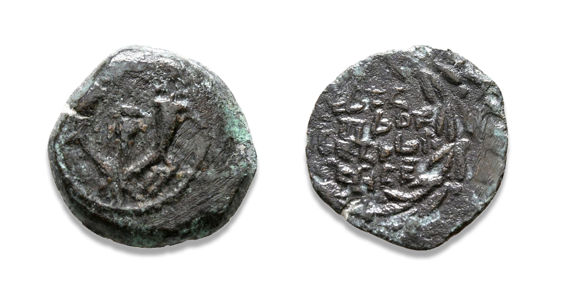 | OBVERSE | Archaic Hebrew inscription, “Yehonatan the High Priest and the Council of the Jews”, surrounded by wreath |